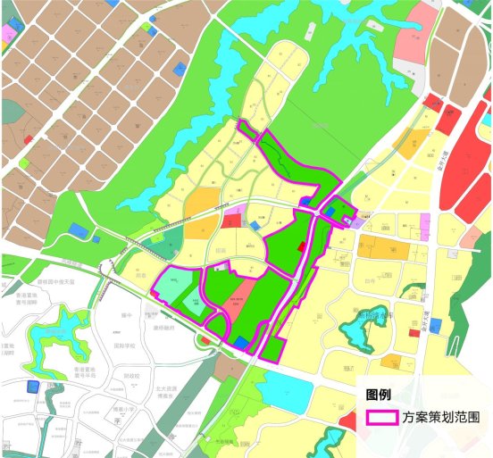 (一)方案策划范围:总占地面积约 87.24公顷。规划包含农林用地、公园绿地、文化体育设施用地、市政设施用地、交通设施用地等。
