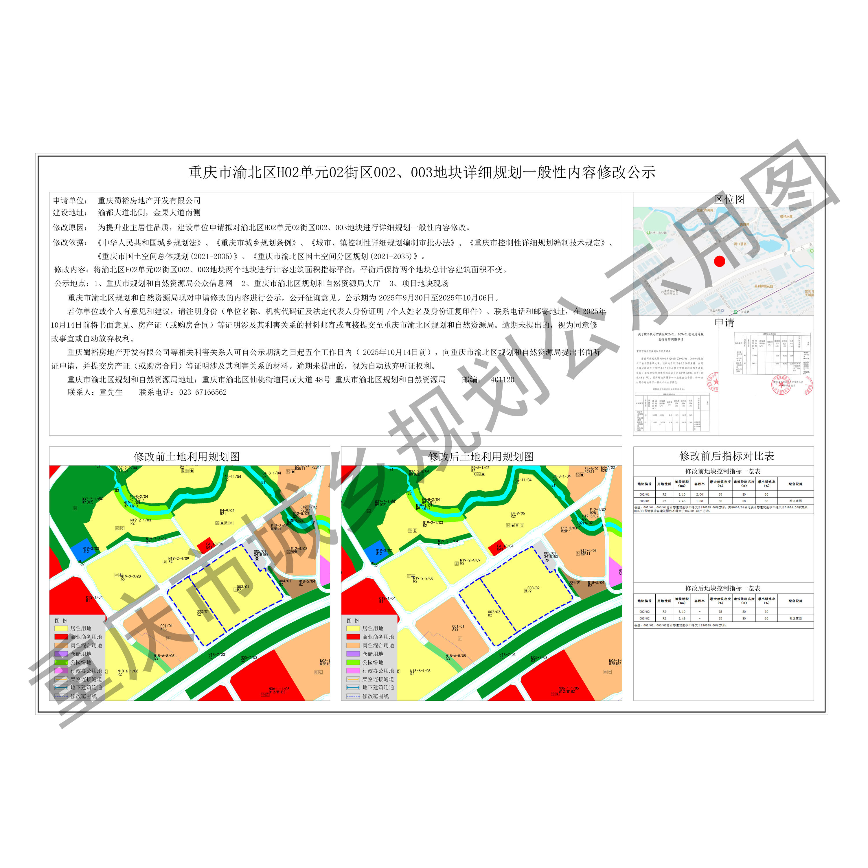 重庆市渝北区H02单元02街区002、003地块详细规划一般性内容修改公示