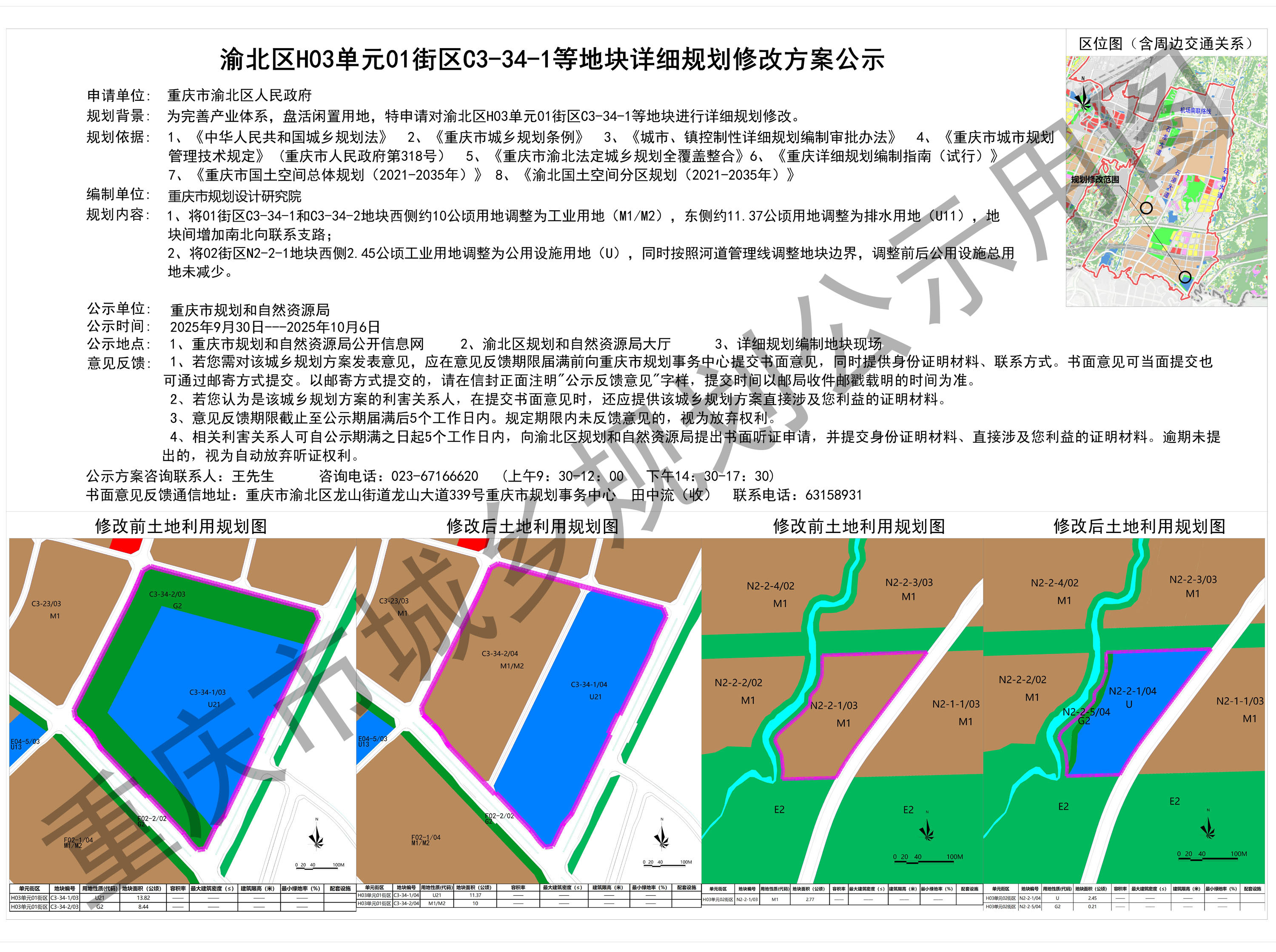 渝北区H03单元01街区C3-34-1等地块详细规划修改方案公示