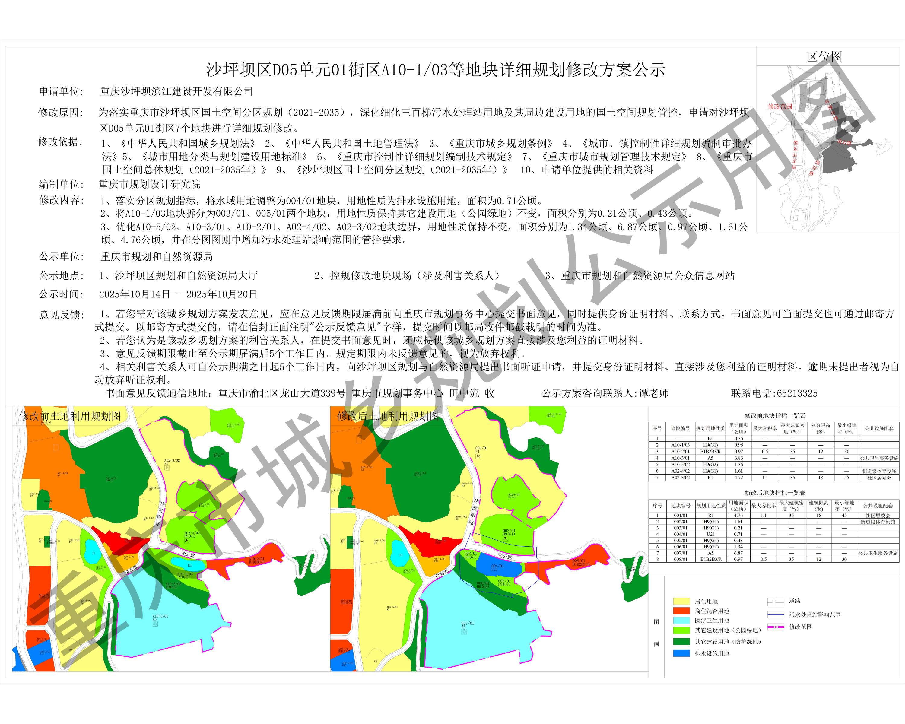 沙坪坝区D05单元01街区A10-103等地块详细规划修改方案公示