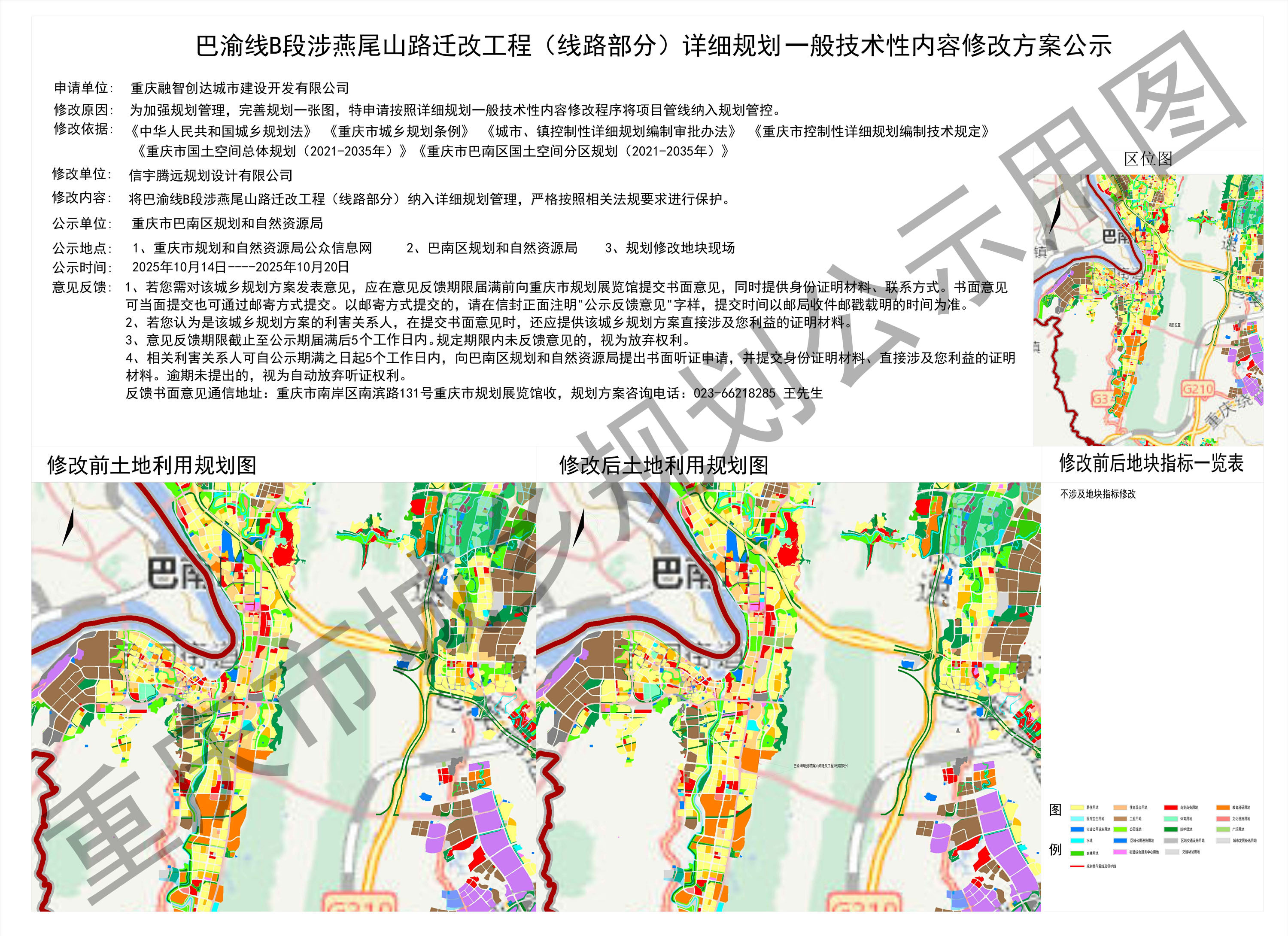 巴渝线B段涉燕尾山路迁改工程(线路部分)详细规划一般技术性内容修改方案公示