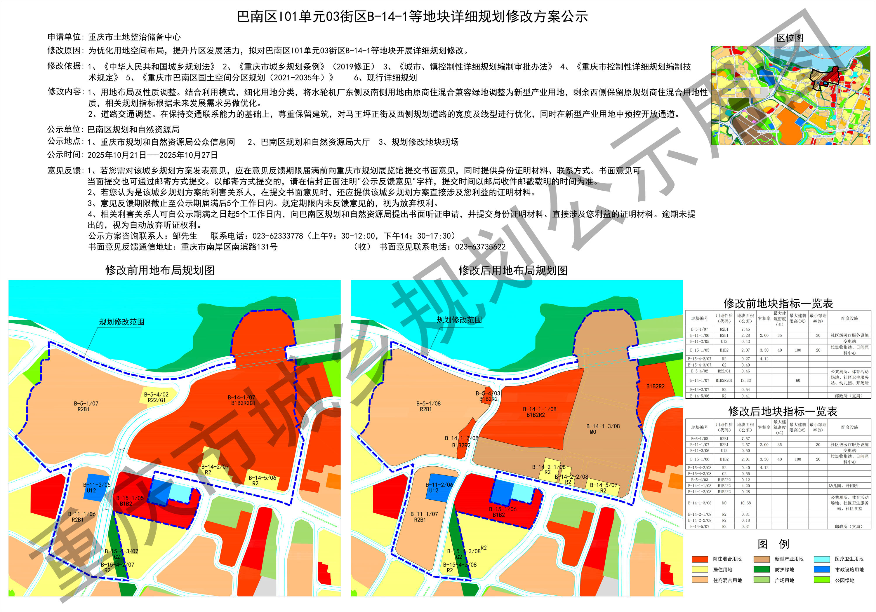 巴南区I01单元03街区B-14-1等地块详细规划修改方案公示