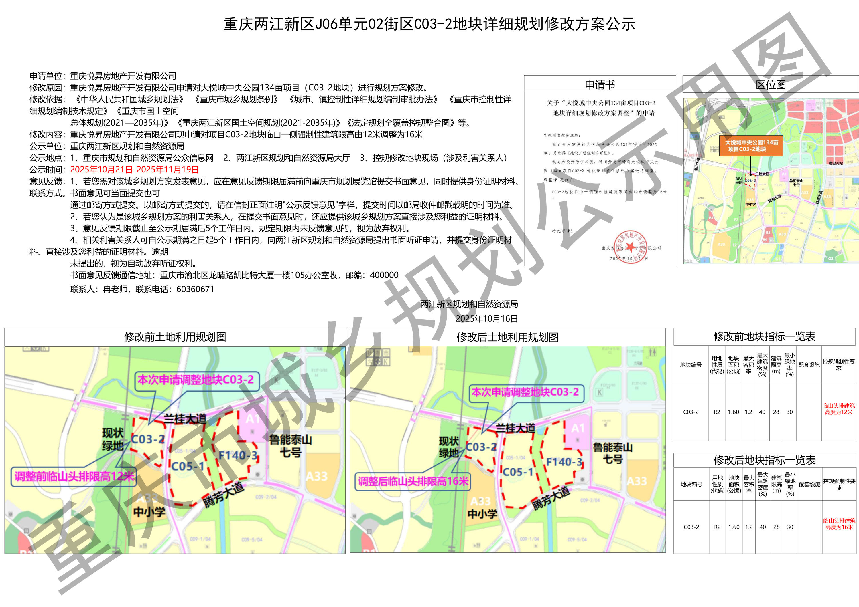 重庆两江新区J06单元02街区C03-2地块详细规划修改方案公示