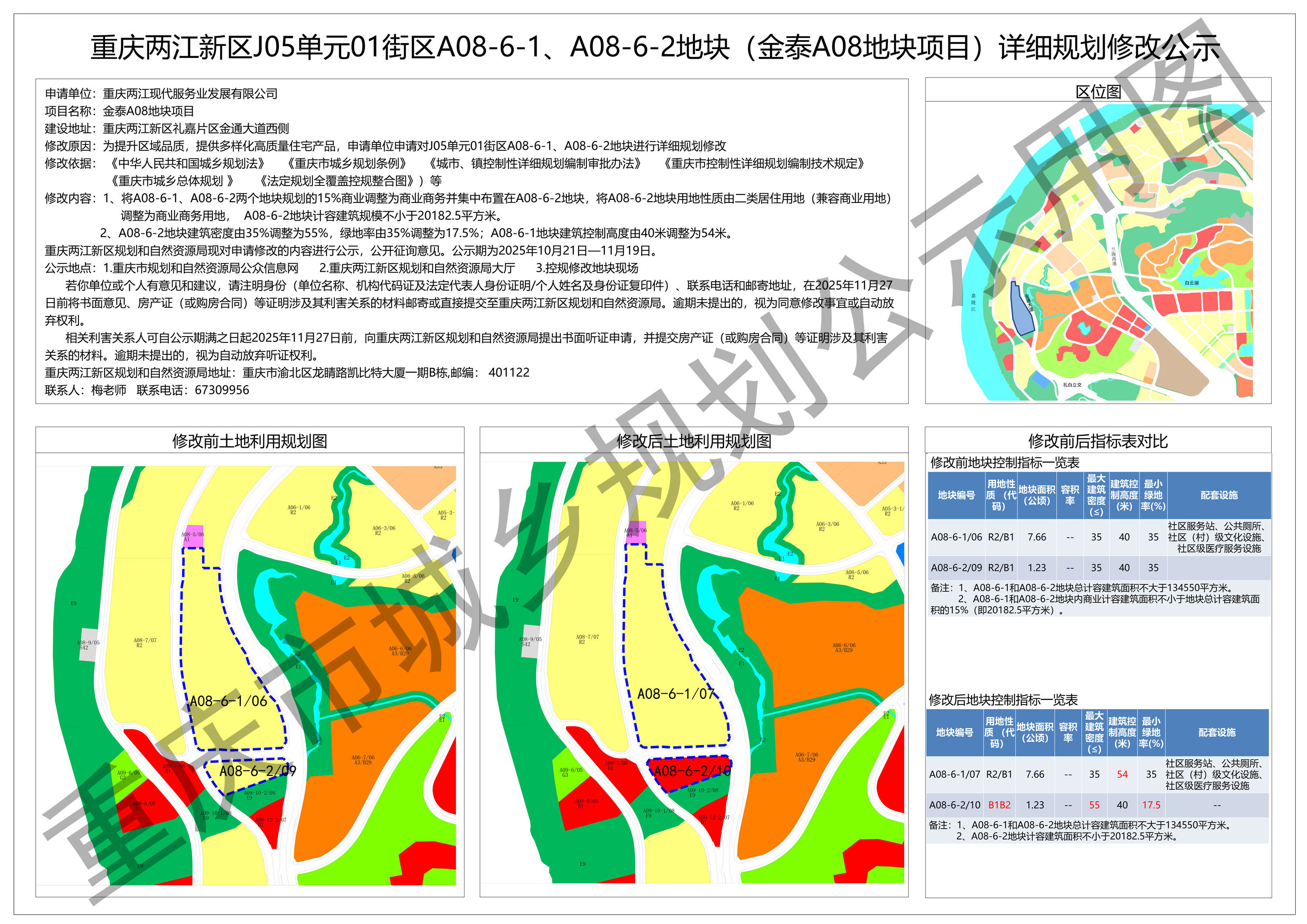 重庆两江新区J05单元01街区A08-6-1、A08-6-2地块(金泰A08地块项目)详细规划修改公示