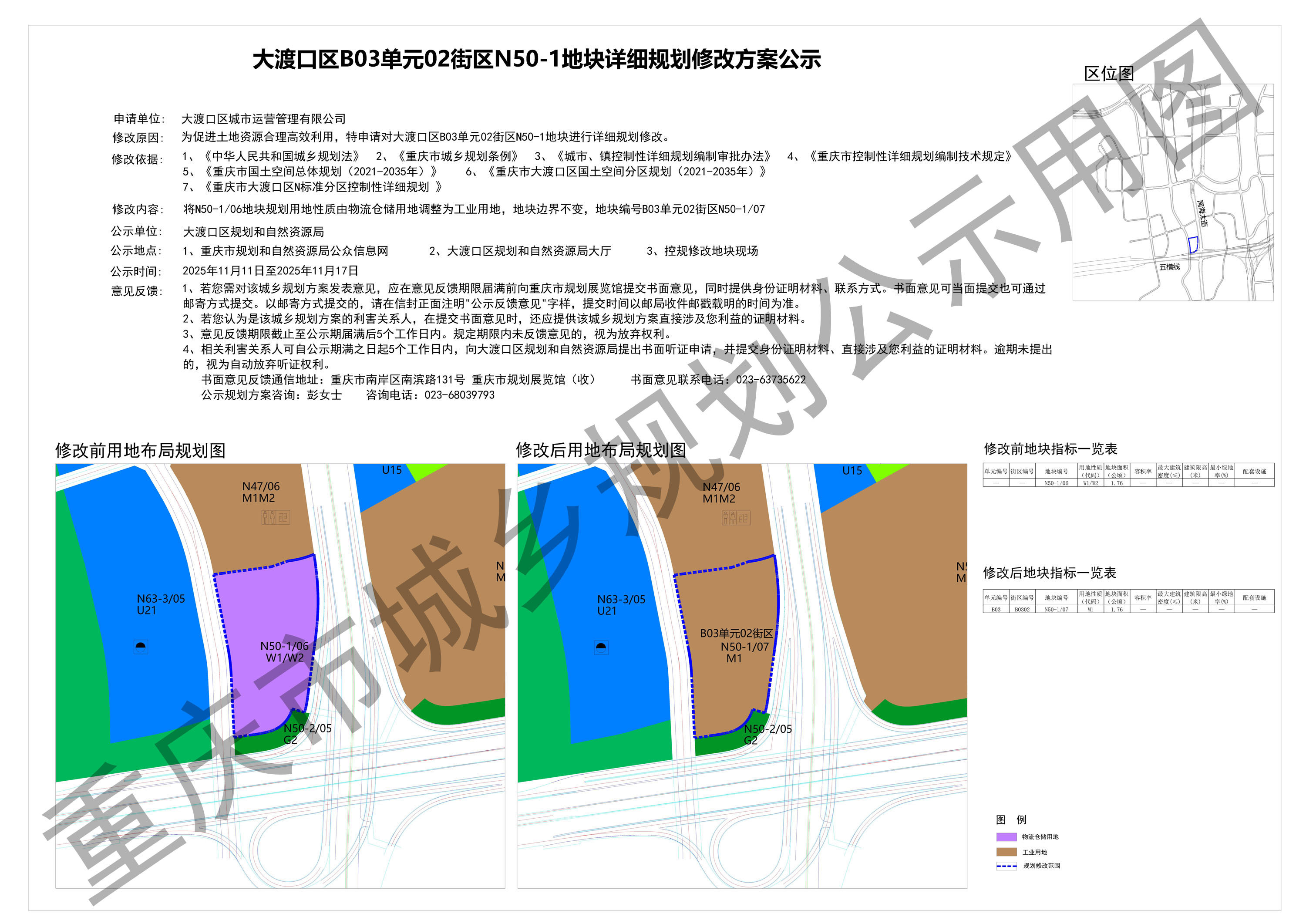 大渡口区B03单元02街区N50-1地块详细规划修改方案公示