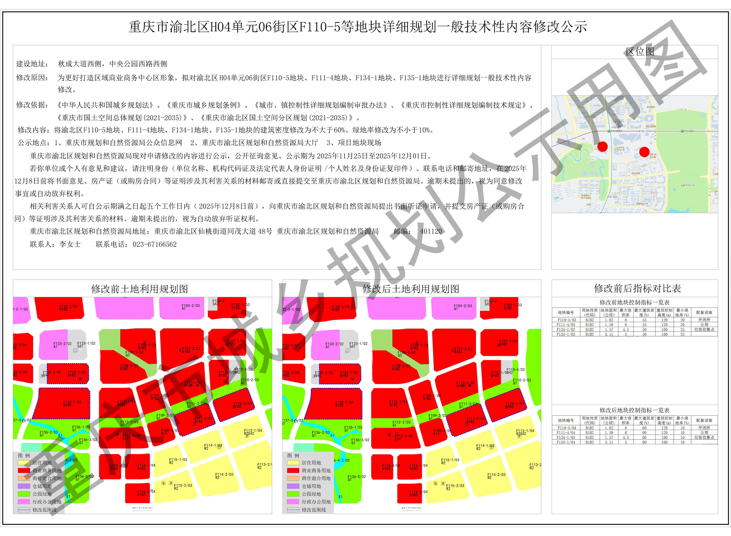 重庆市渝北区H04单元06街区F110-5等地块详细规划一般技术性内容修改公示