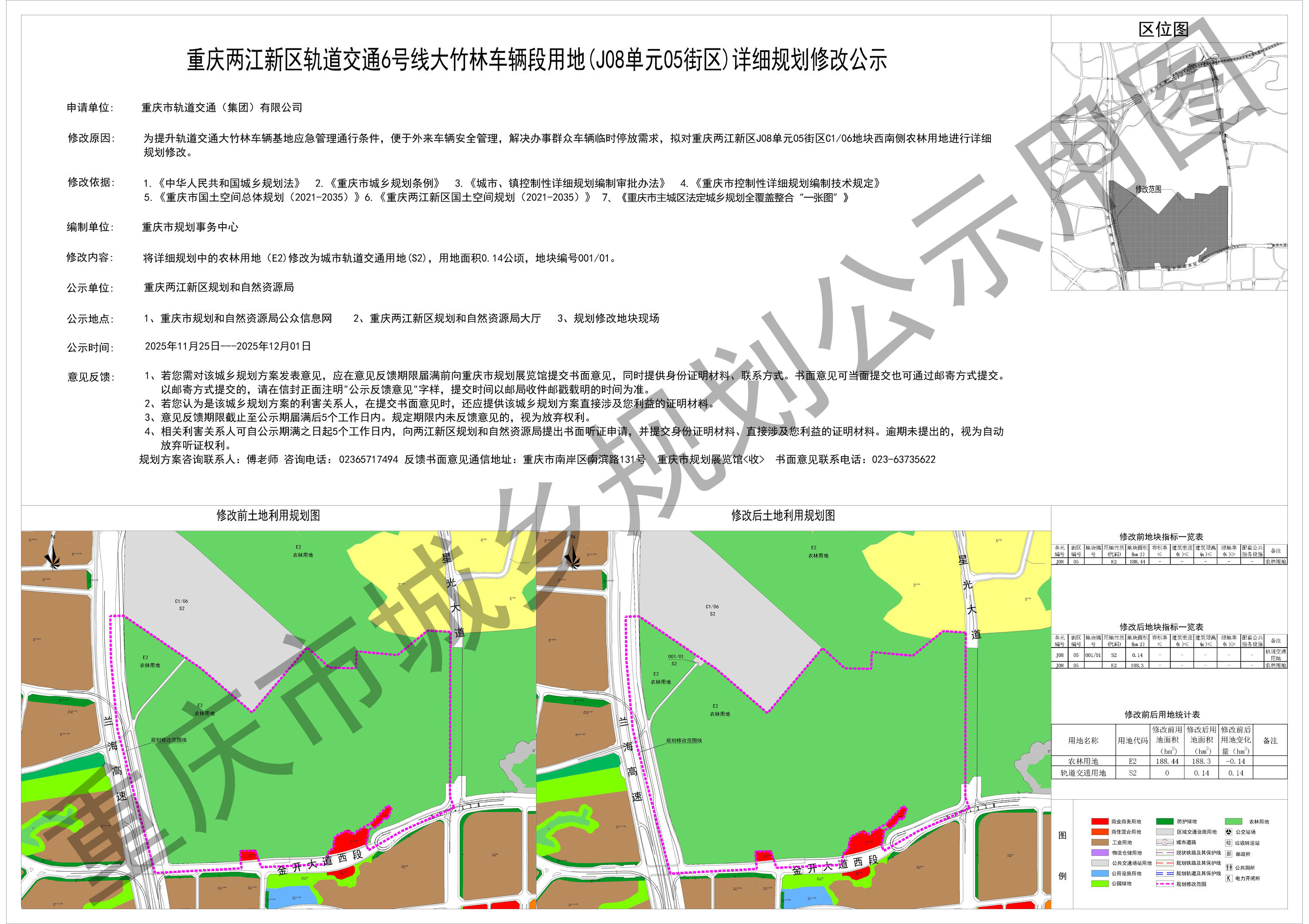 重庆两江新区轨道交通6号线大竹林车辆段用地(J08单元05街区)详细规划修改公示