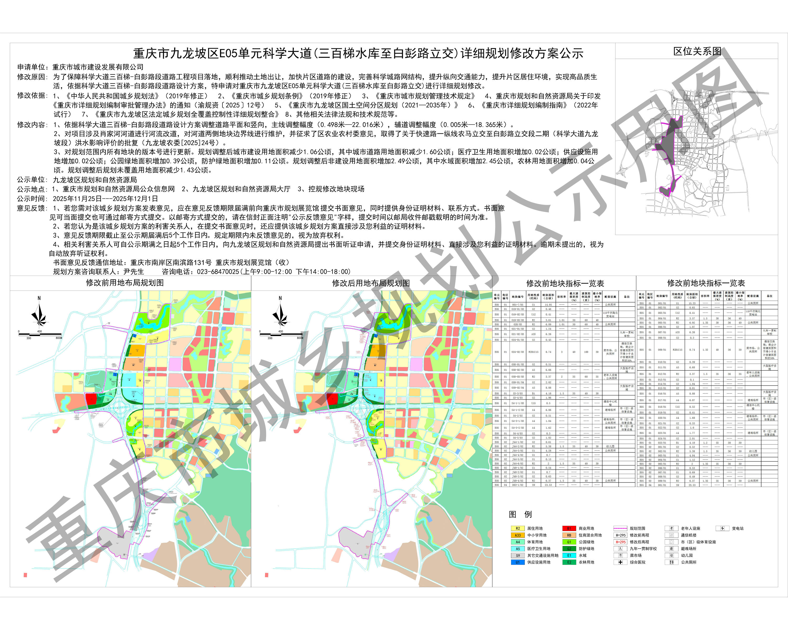 重庆市九龙坡区E05单元科学大道(三百梯水库至白彭路立交)详细规划修改方案公示