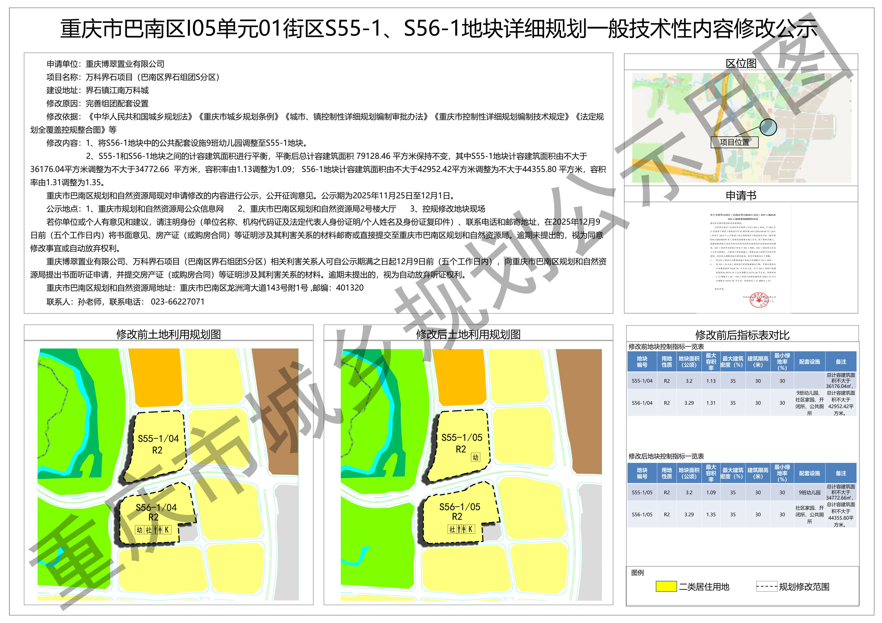 重庆市巴南区I05单元01街区S55-1、S56-1地块详细规划一般技术性内容修改公示