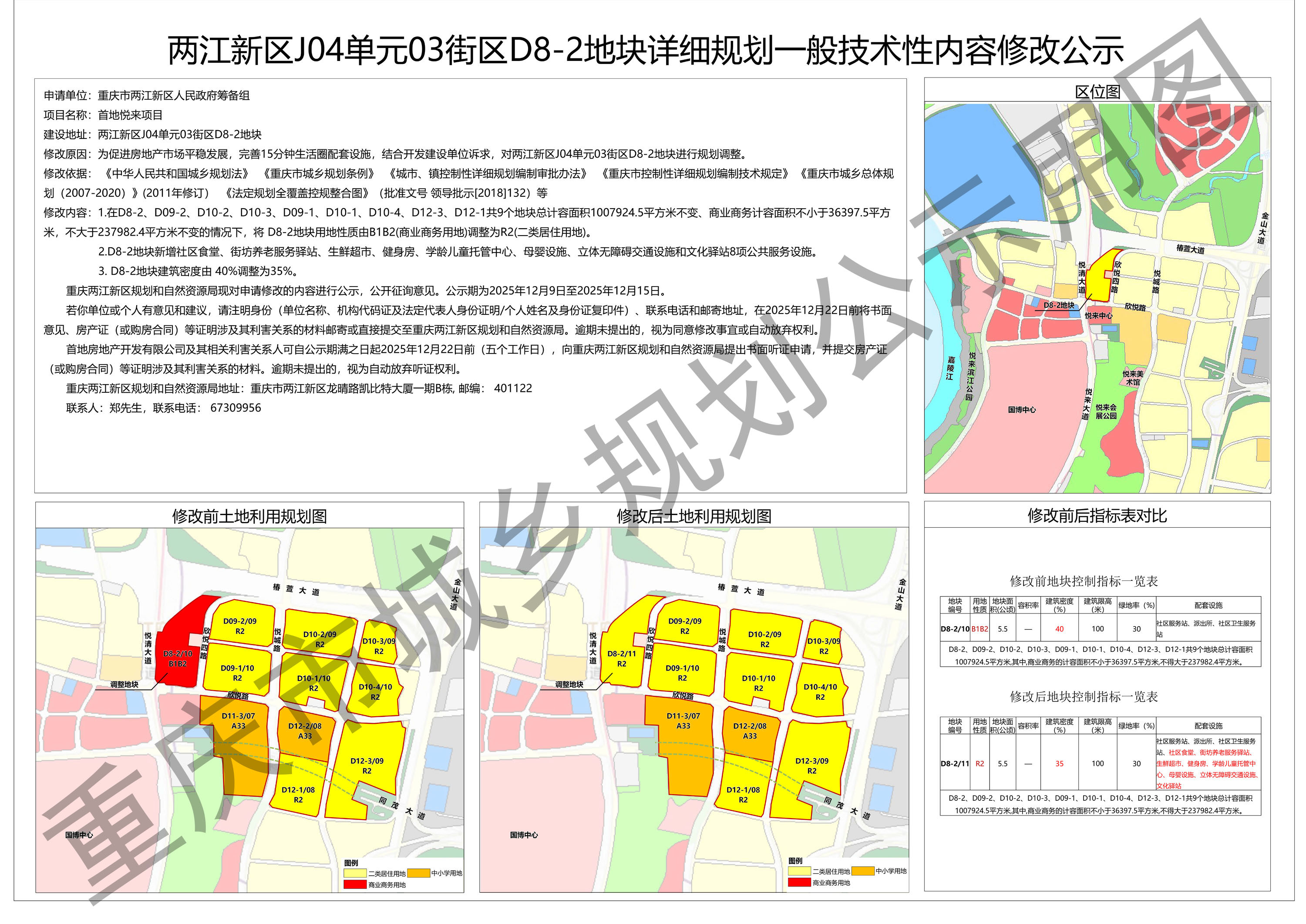 两江新区J04单元03街区D8-2地块详细规划一般技术性内容修改公示