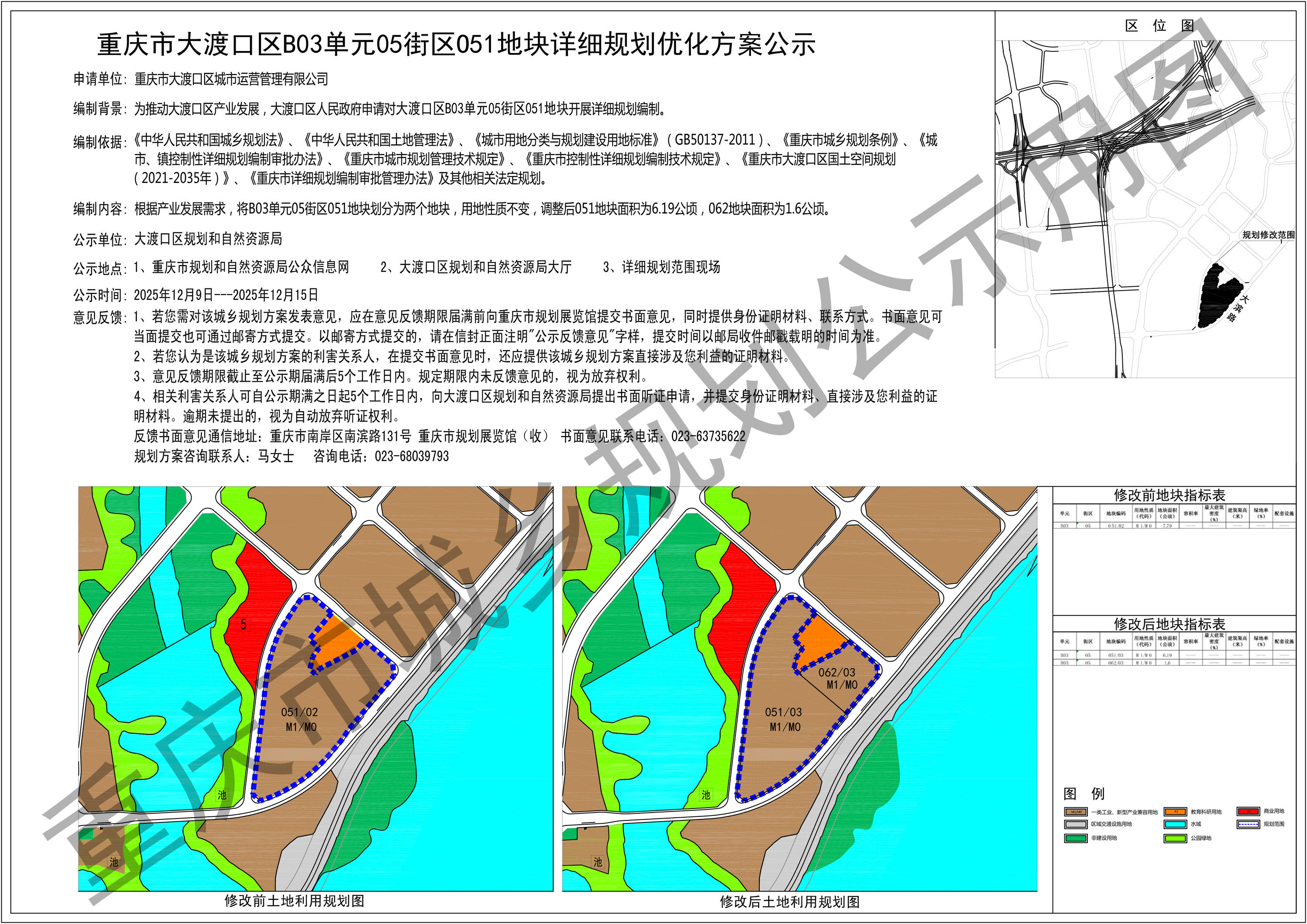 重庆市大渡口区B03单元05街区O51地块详细规划优化方案公示