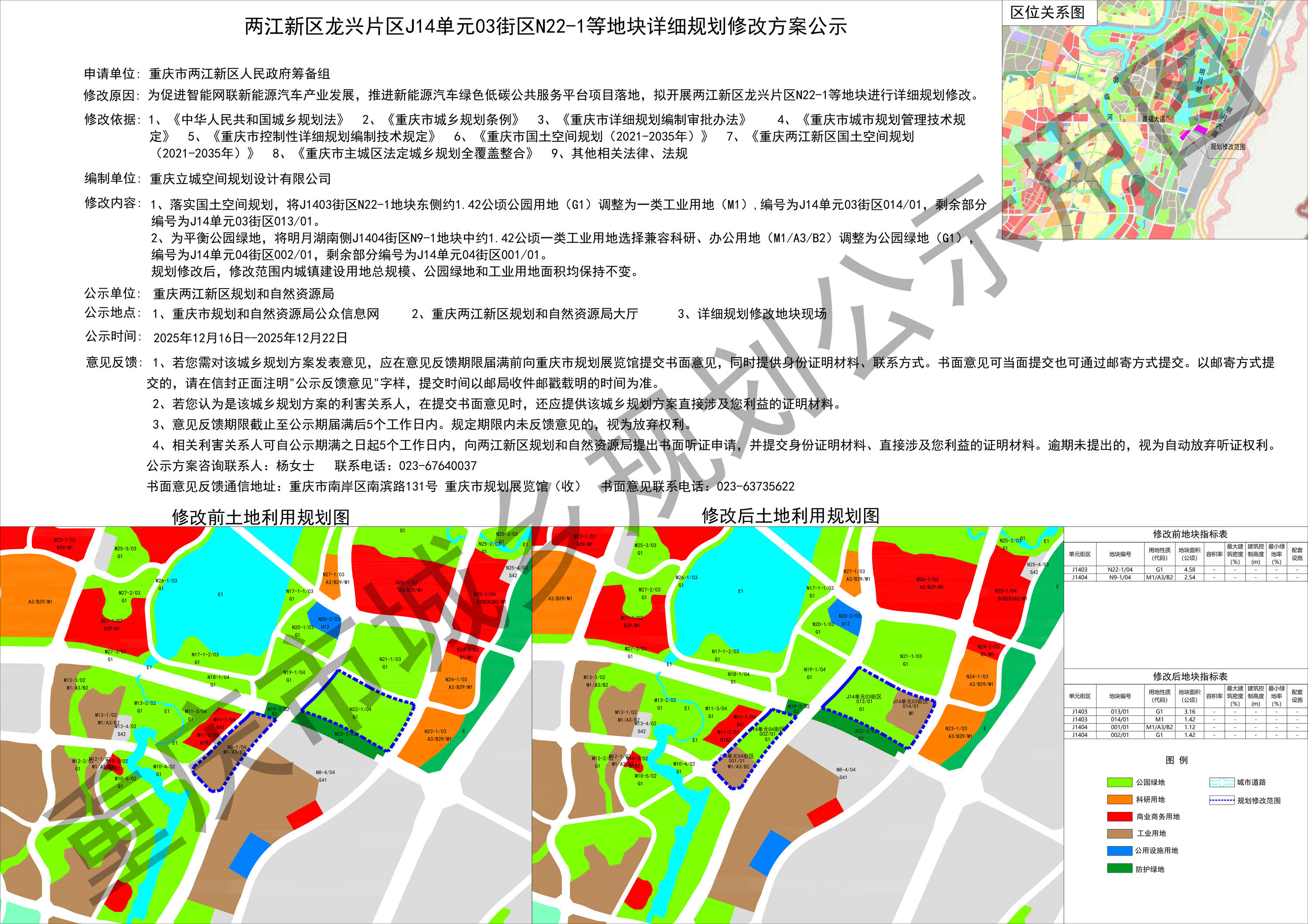 两江新区龙兴片区J14单元03街区N22-1等地块详细规划修改方案公示