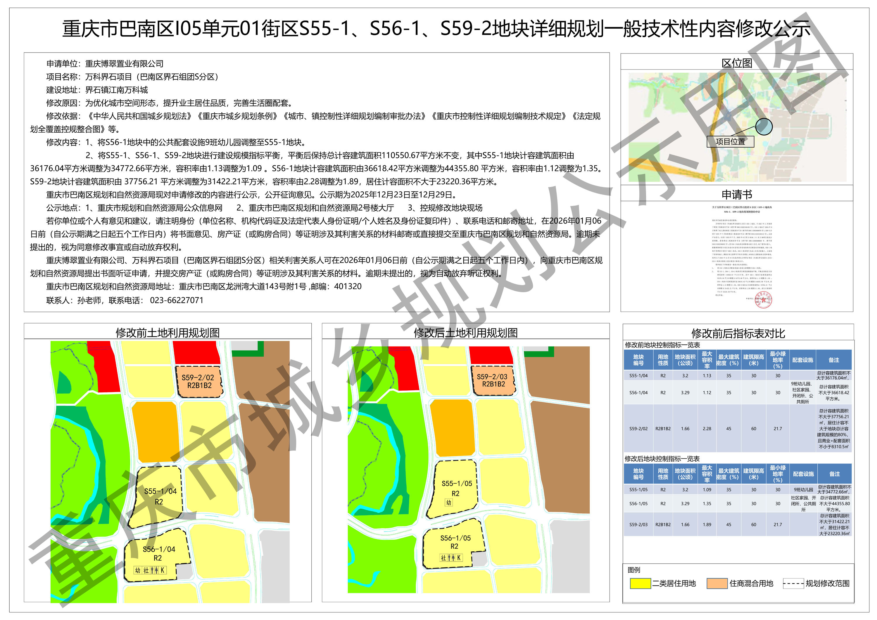重庆市巴南区I05单元01街区S55-1、S56-1、S59-2地块详细规划一般技术性内容修改公示