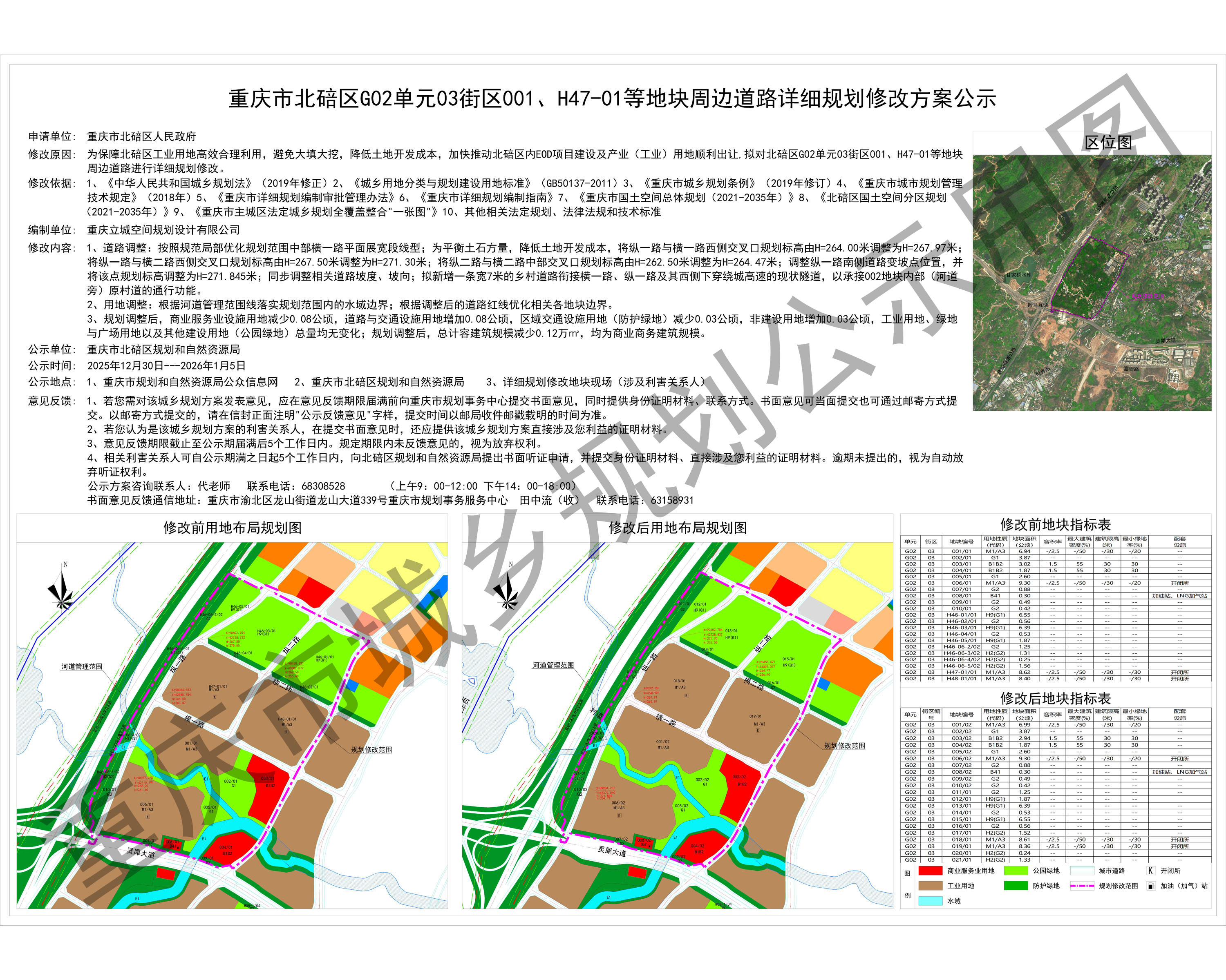 重庆市北碚区G02单元03街区001、H47-01等地块周边道路详细规划修改方案公示