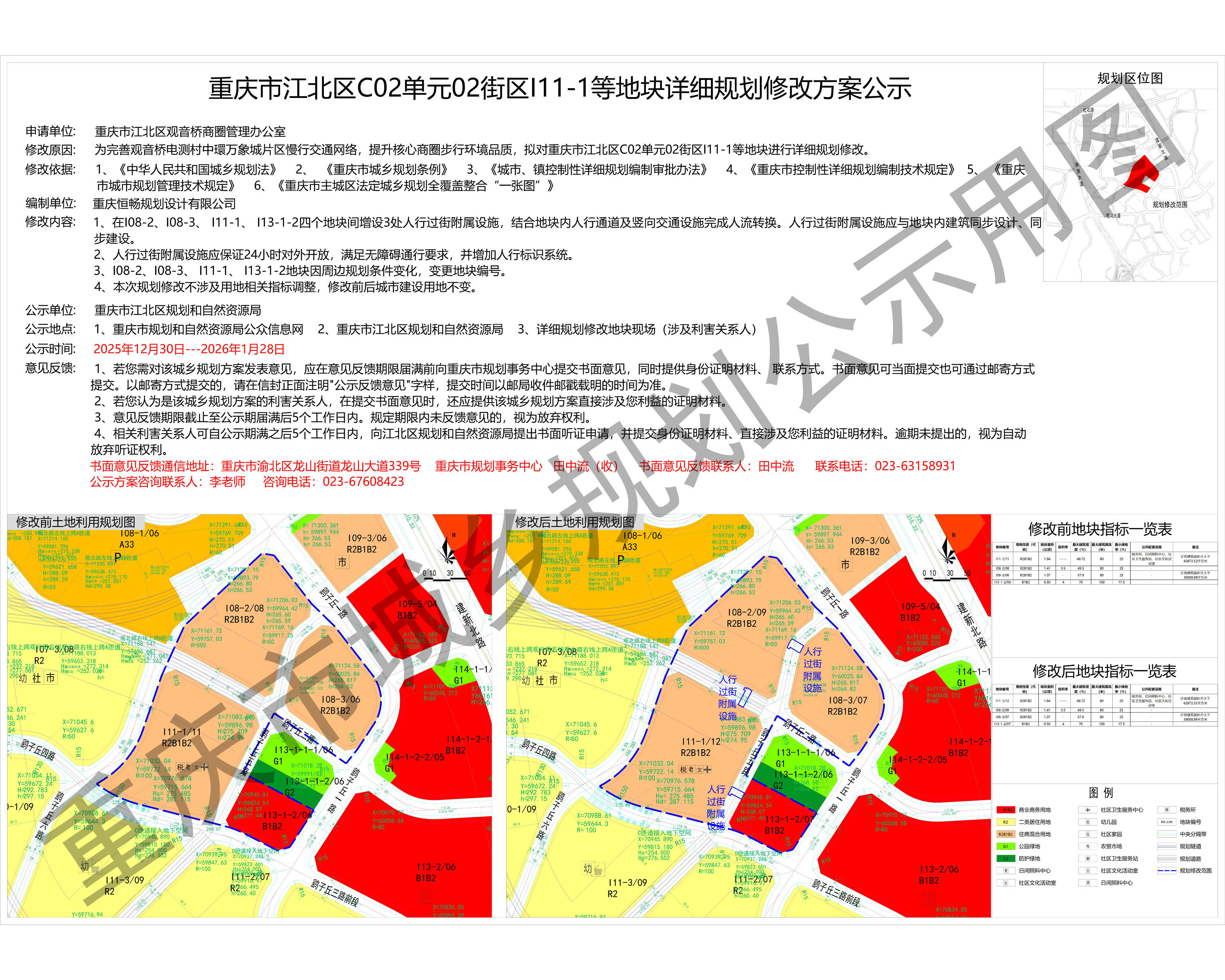 重庆市江北区C02单元02街区I11-1等地块详细规划修改方案公示