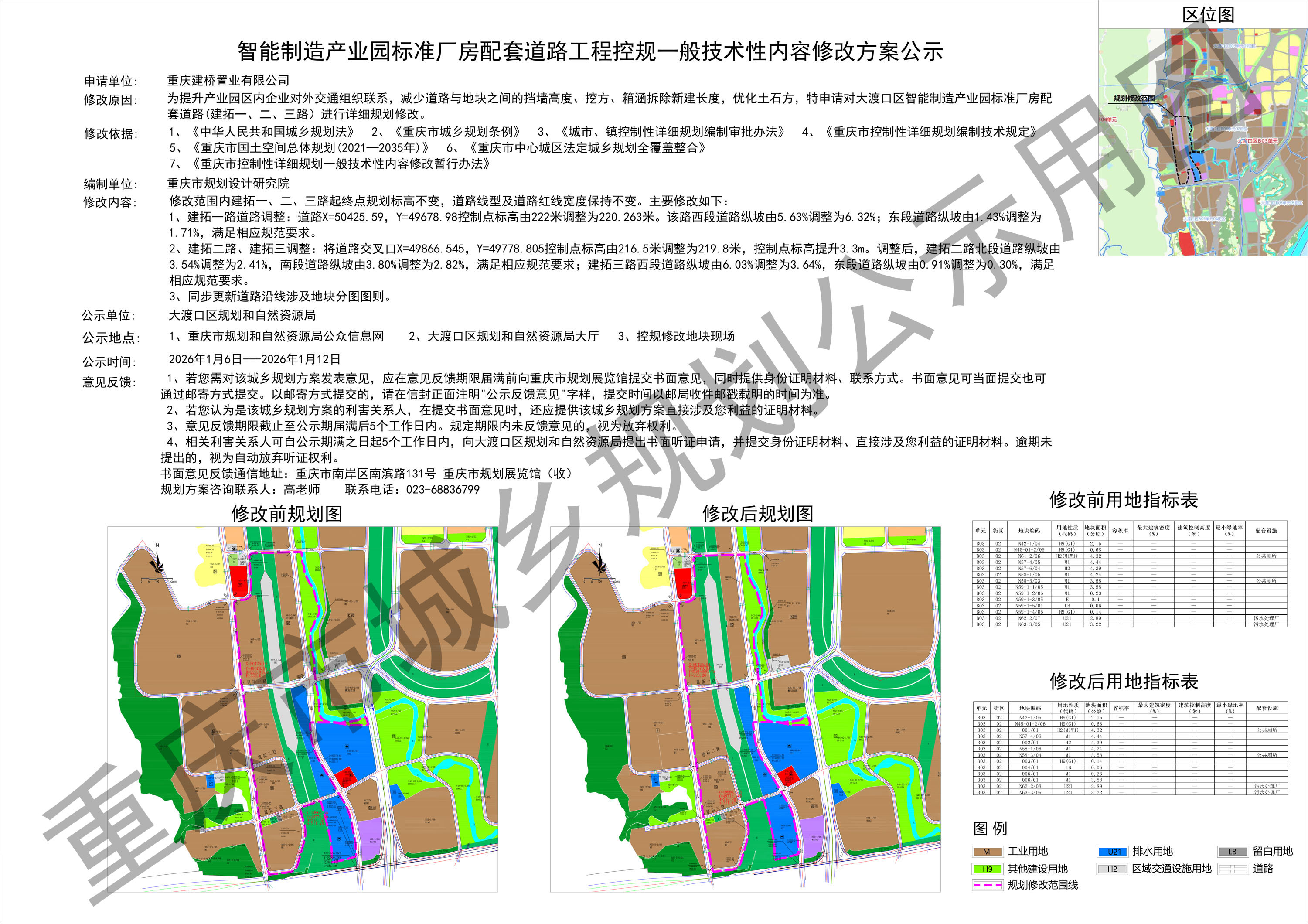 智能制造产业园标准厂房配套道路工程控规一般技术性内容修改方案公示