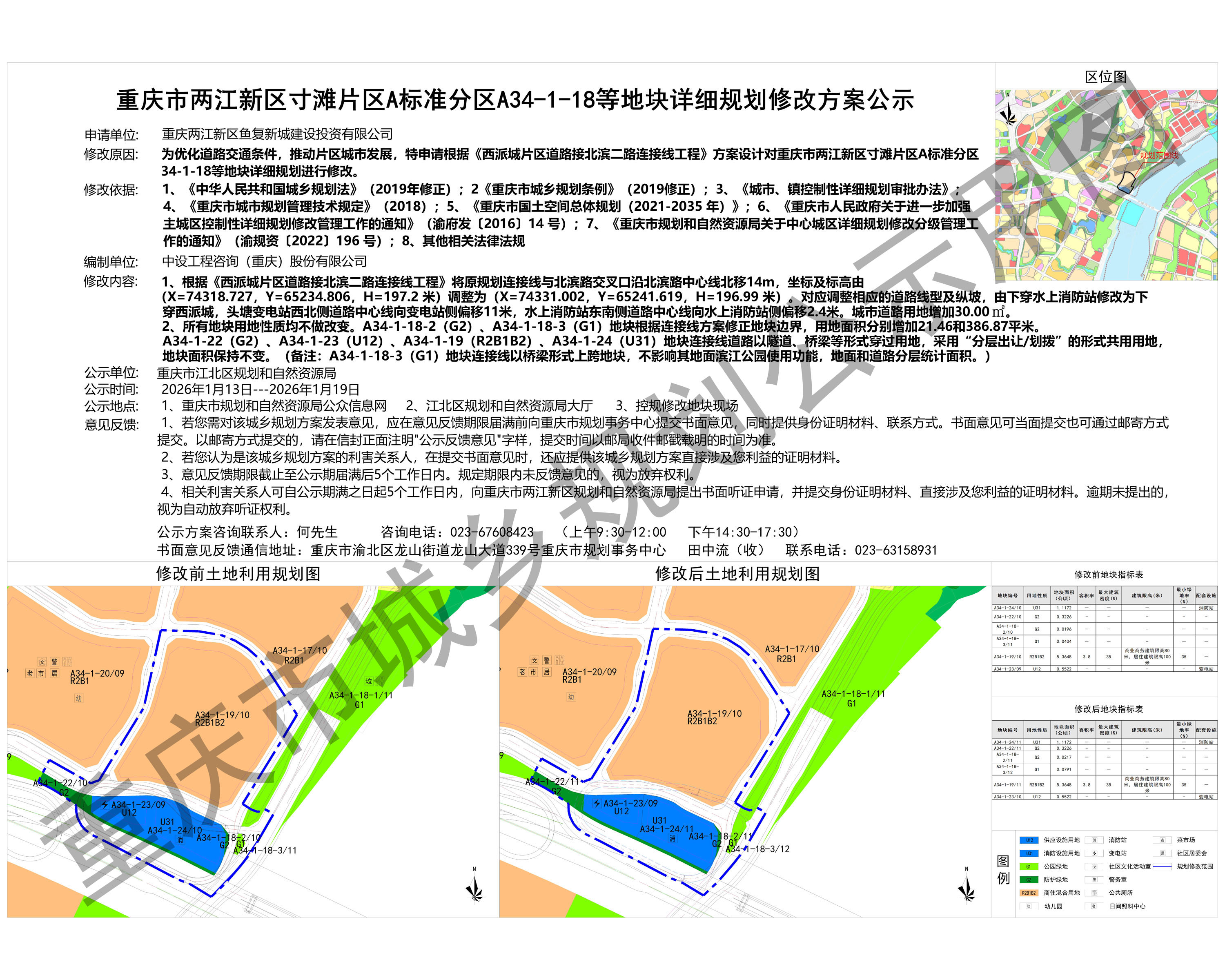 重庆市两江新区寸滩片区A标准分区A34-1-18等地块详细规划修改方案公示
