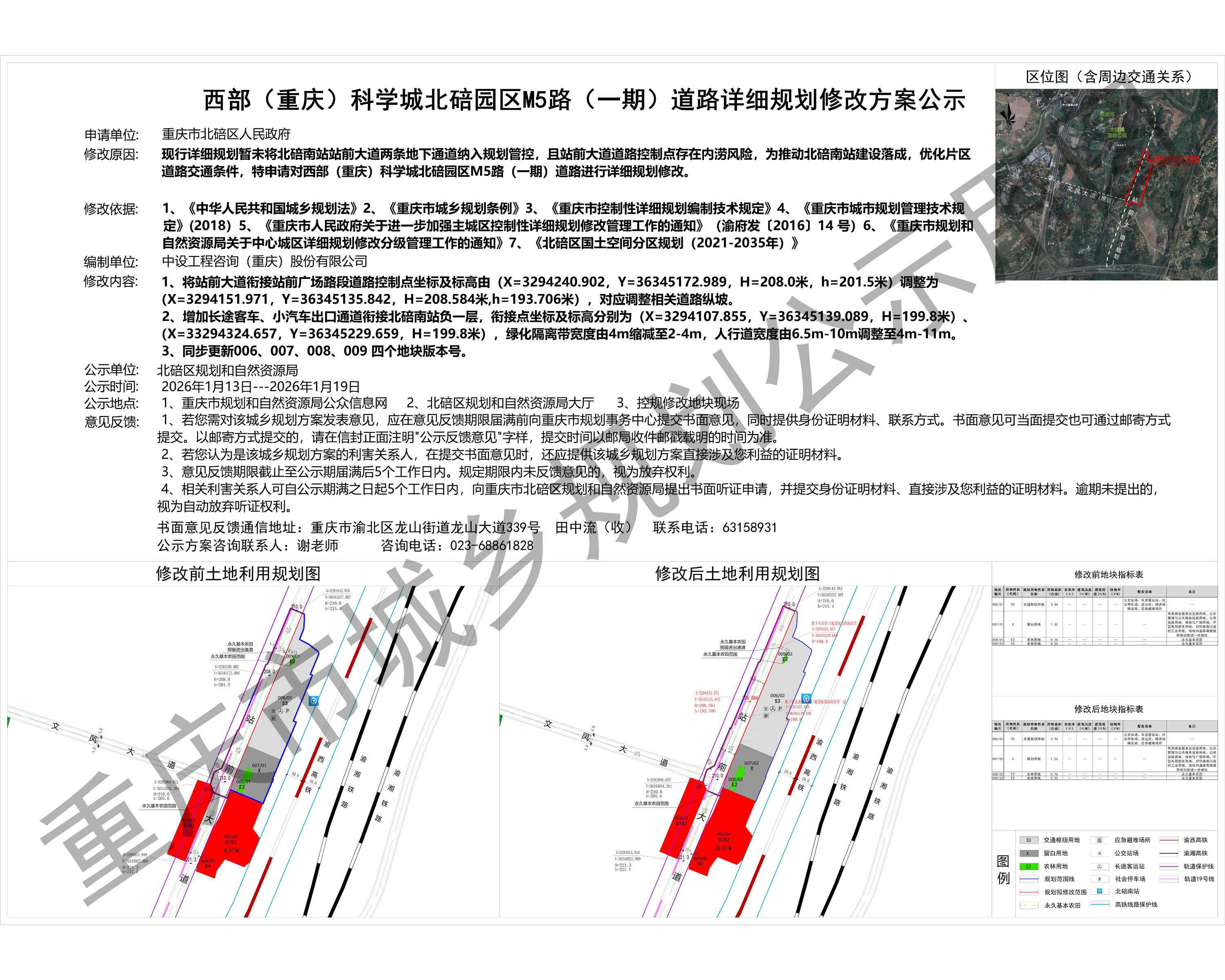 西部(重庆)科学城北碚园区M5路(一期)道路详细规划修改方案公示