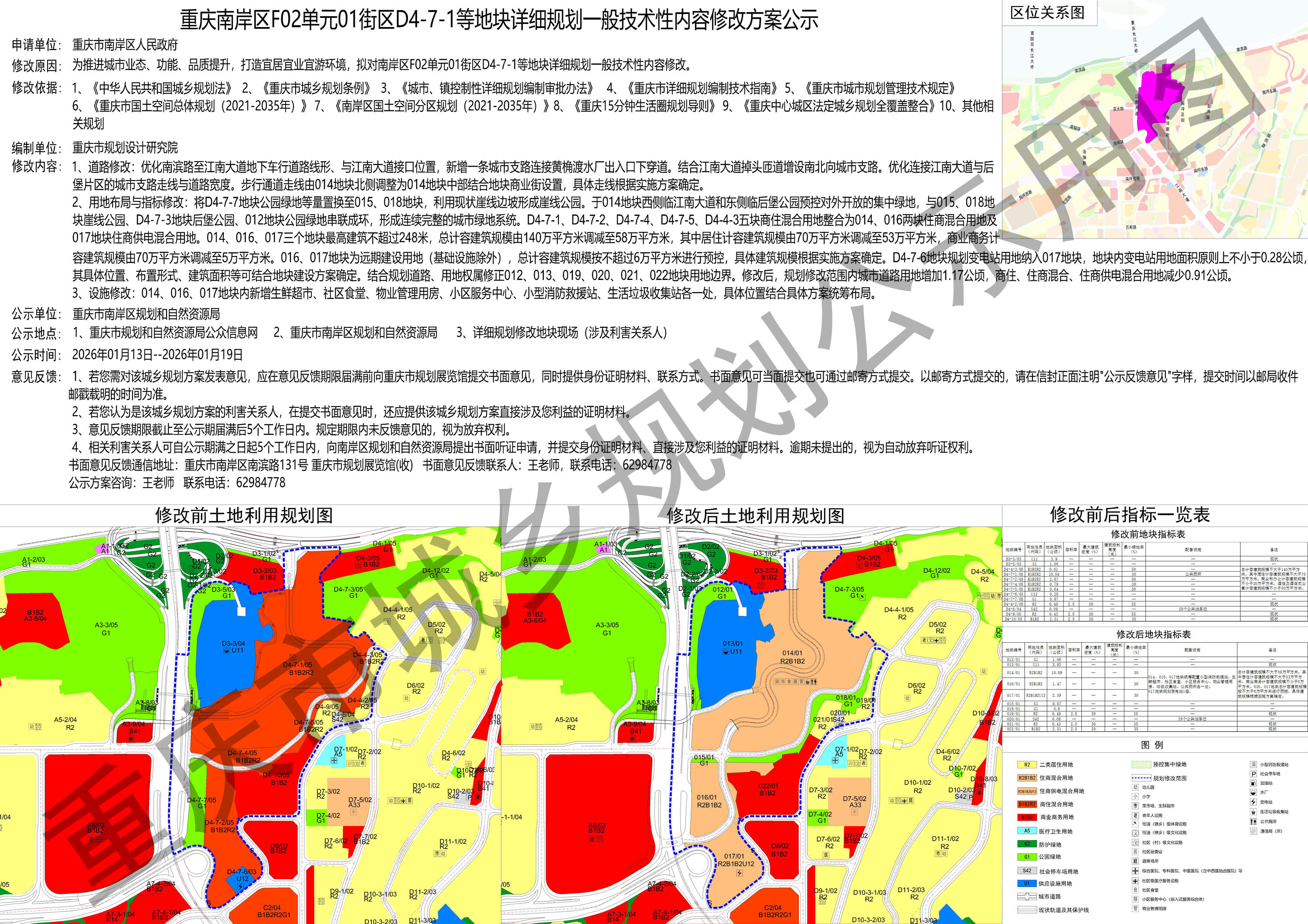 重庆南岸区F02单元01街区D4-7-1等地块详细规划一般技术性内容修改方案公示