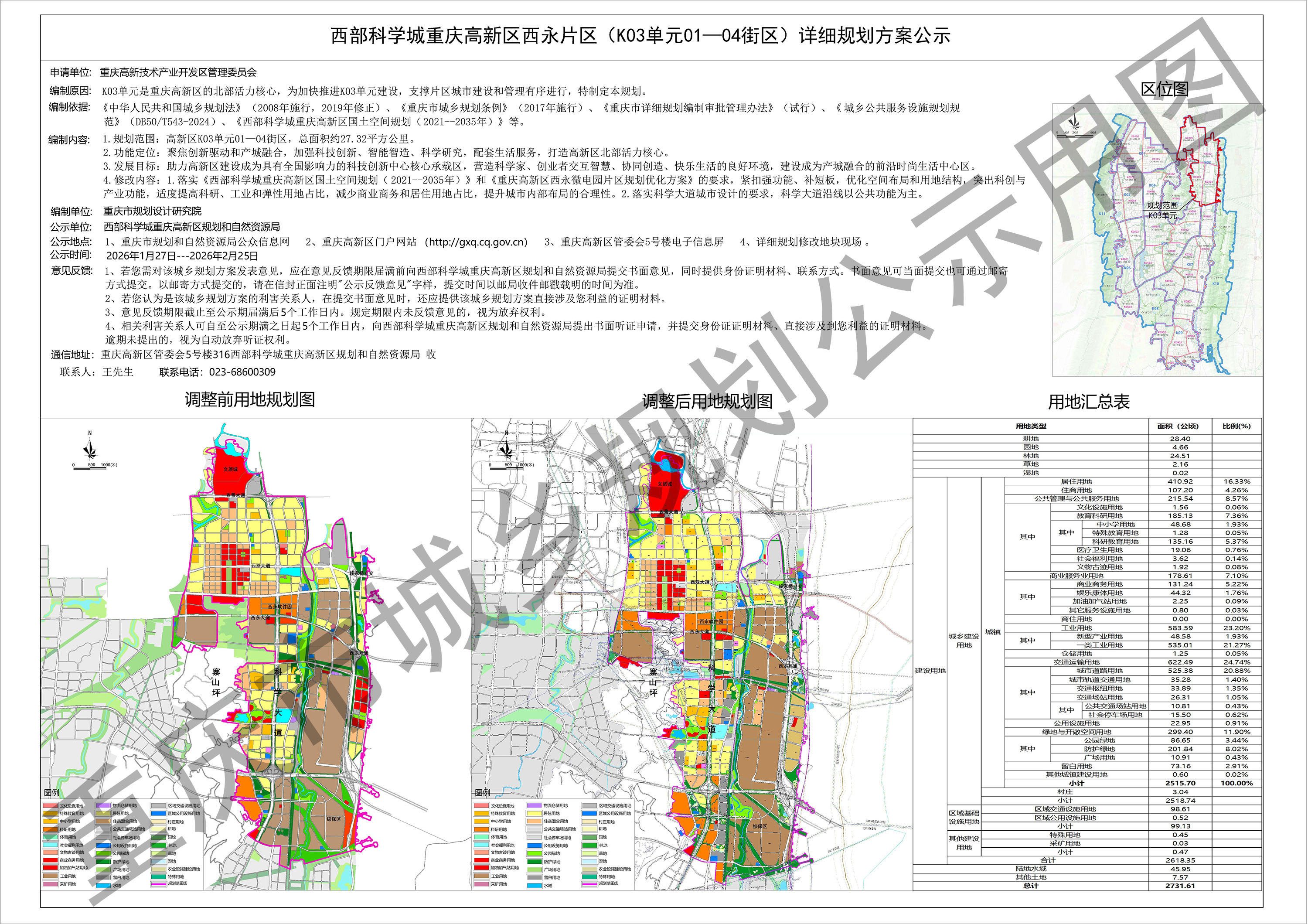 西部科学城重庆高新区西永片区(K03单元01—04街区)详细规划方案公示