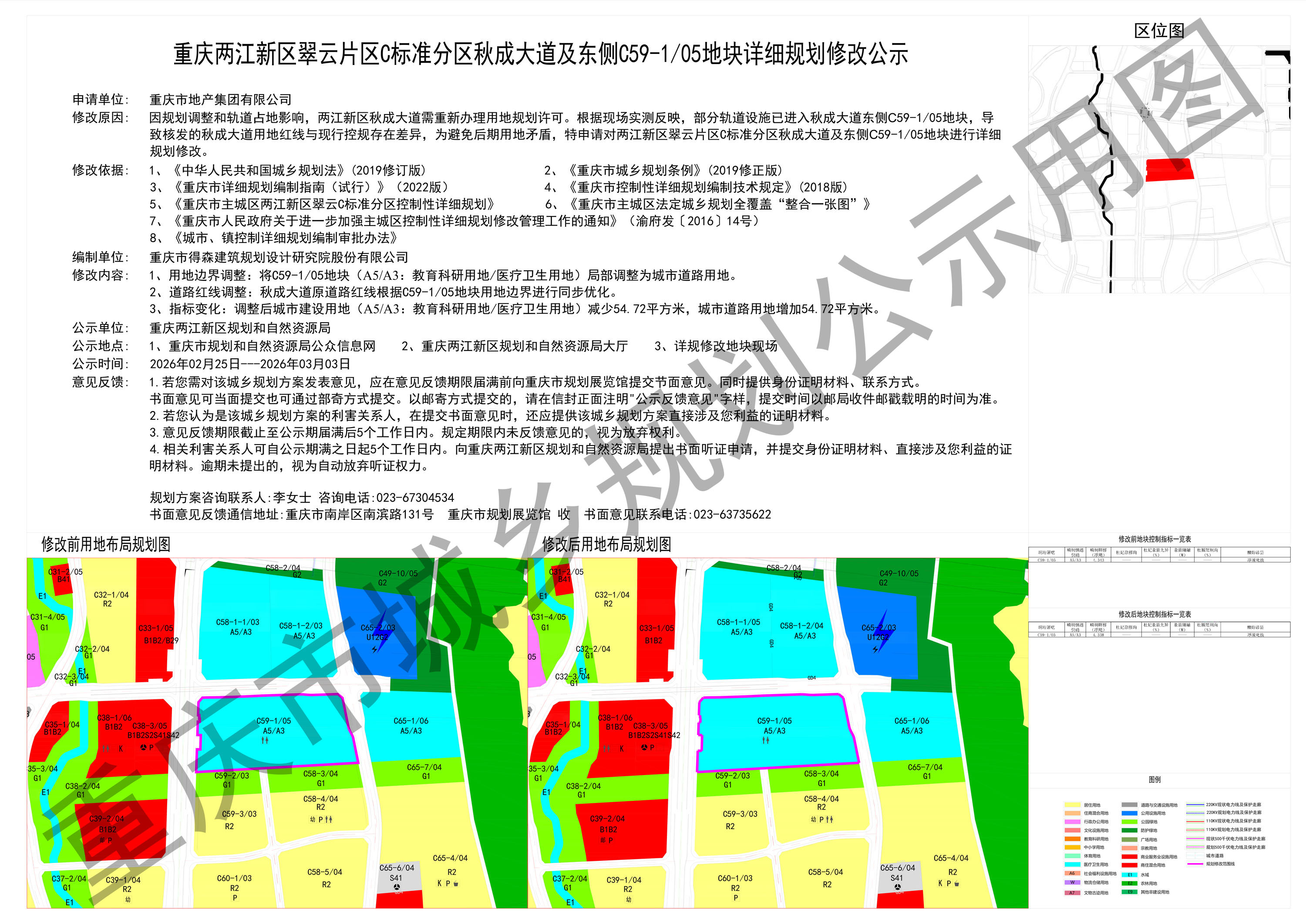 重庆两江新区翠云片区C标准分区秋成大道及东侧C59-1/05地块详细规划修改公示