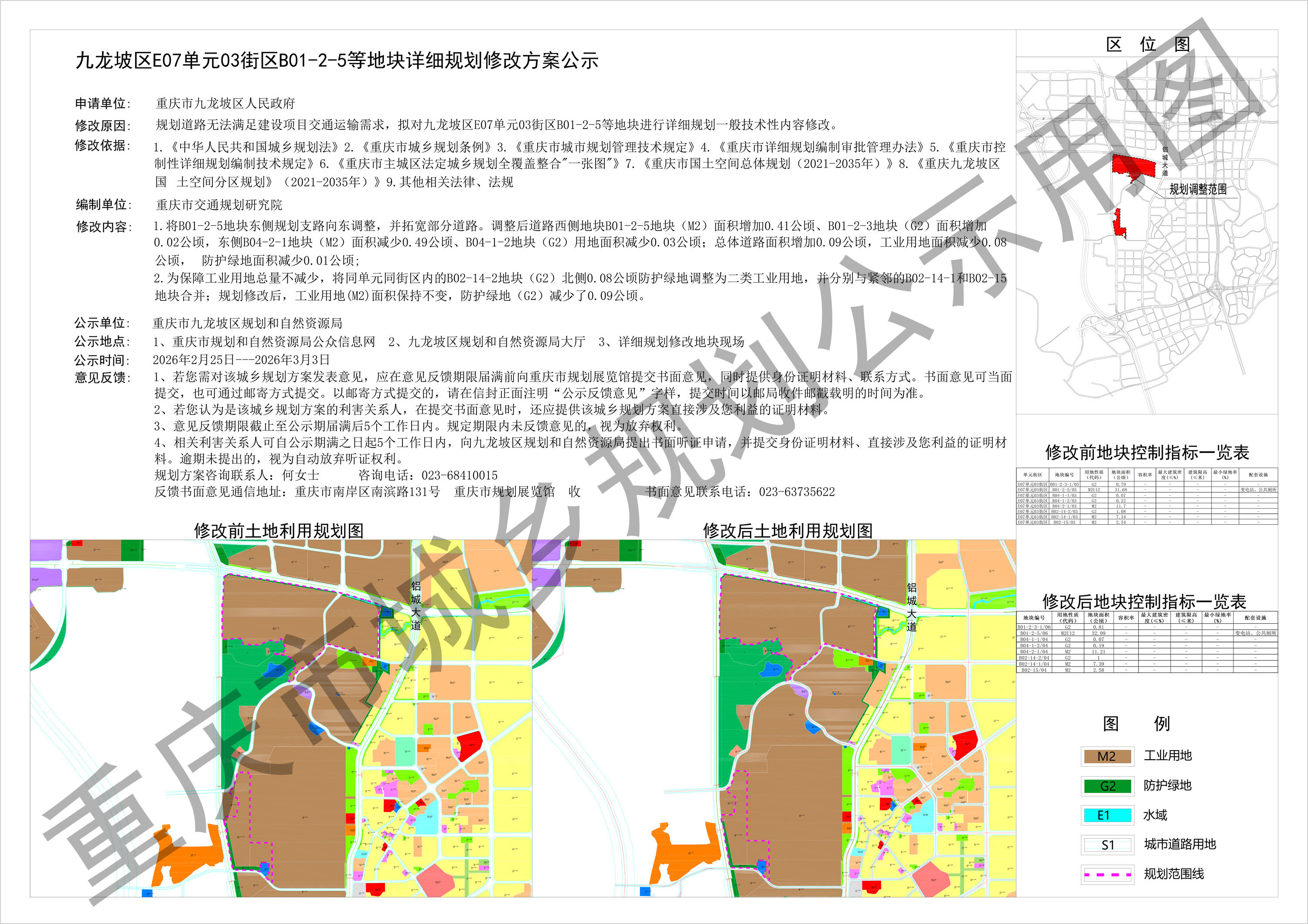 九龙坡区E07单元03街区B01-2-5等地块详细规划修改方案公示
