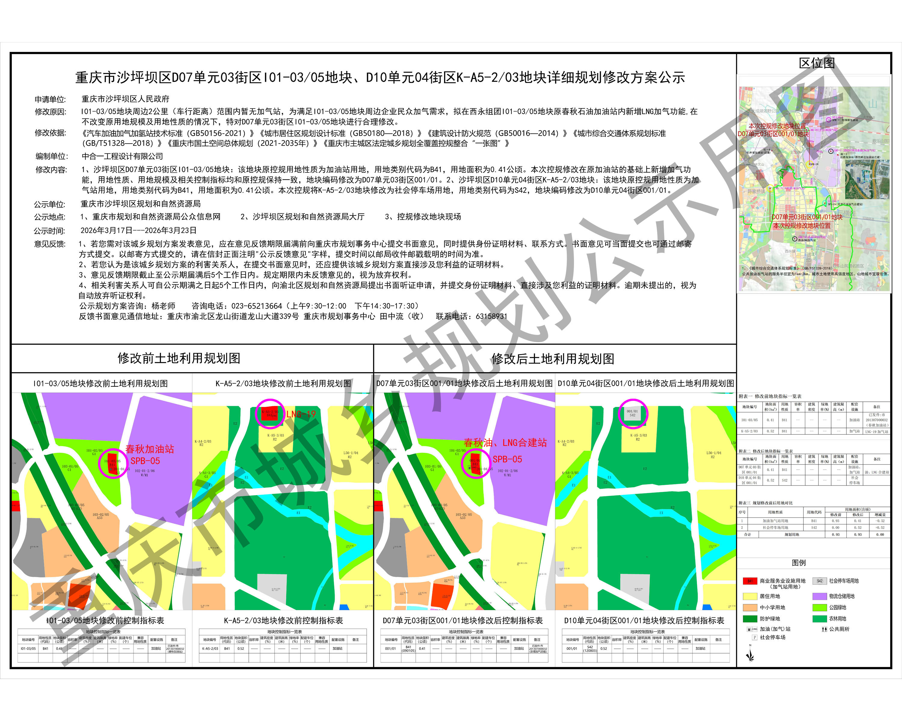 重庆市沙坪坝区D07单元03街区I01-03/05地块、D10单元04街区K-A5-2/03地块详细规划修改方案公示