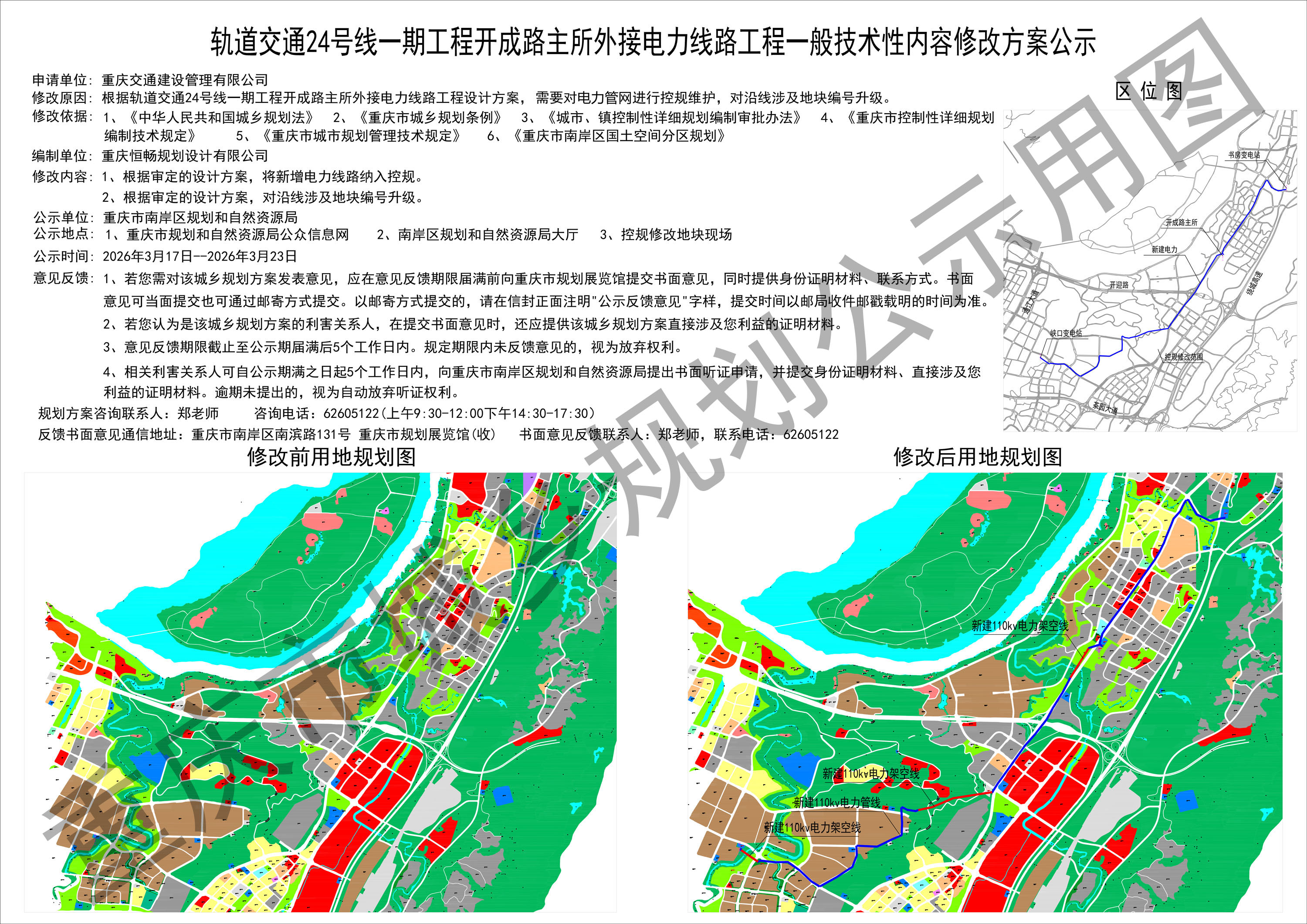 轨道交通24号线一期开成路主所外接电力线路工程一般技术性内容修改方案公示