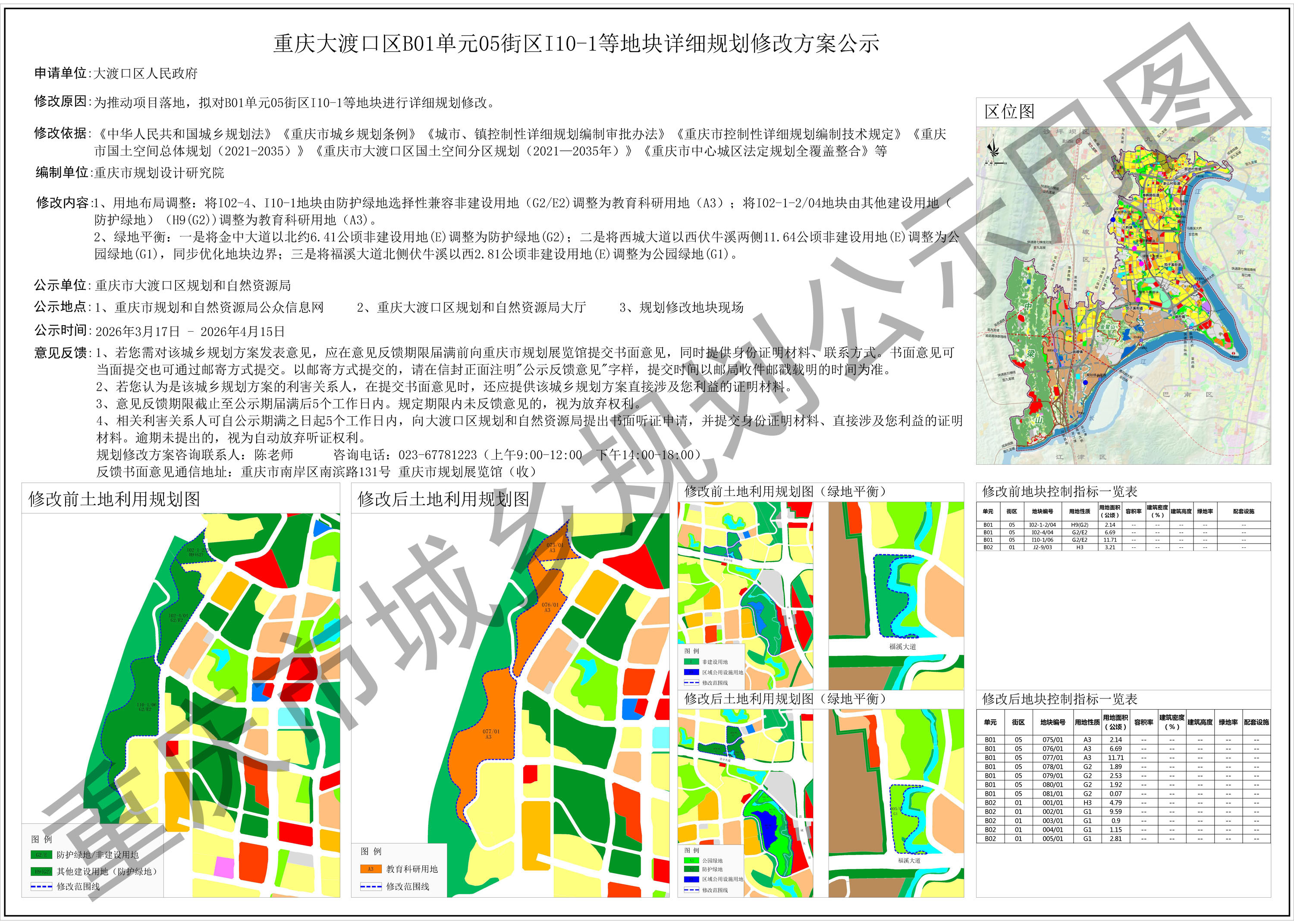 重庆大渡口区B01单元05街区I10-1等地块详细规划修改方案公示