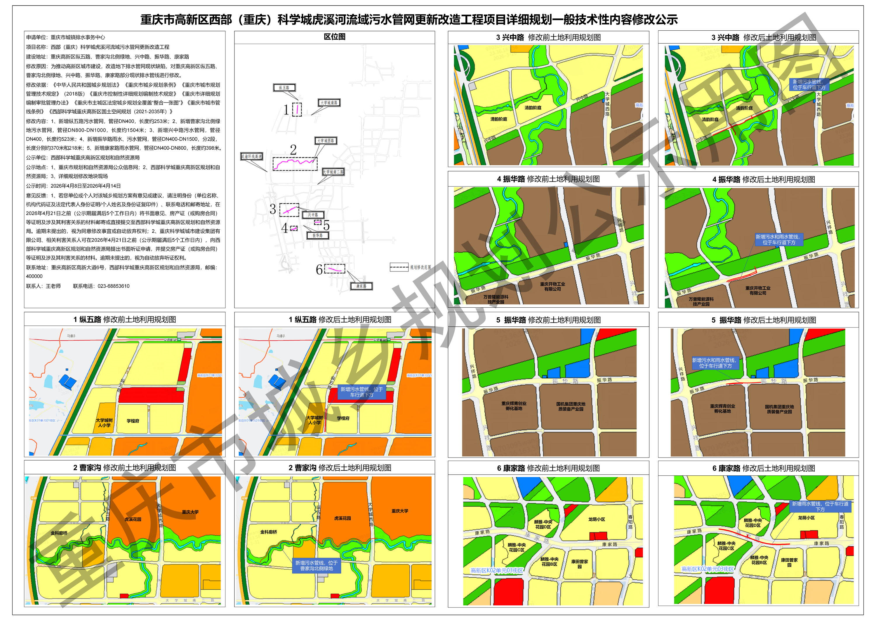 重庆市高新区西部(重庆)科学城虎溪河流域污水管网更新改造工程项目详细规划一般技术性内容修改公示
