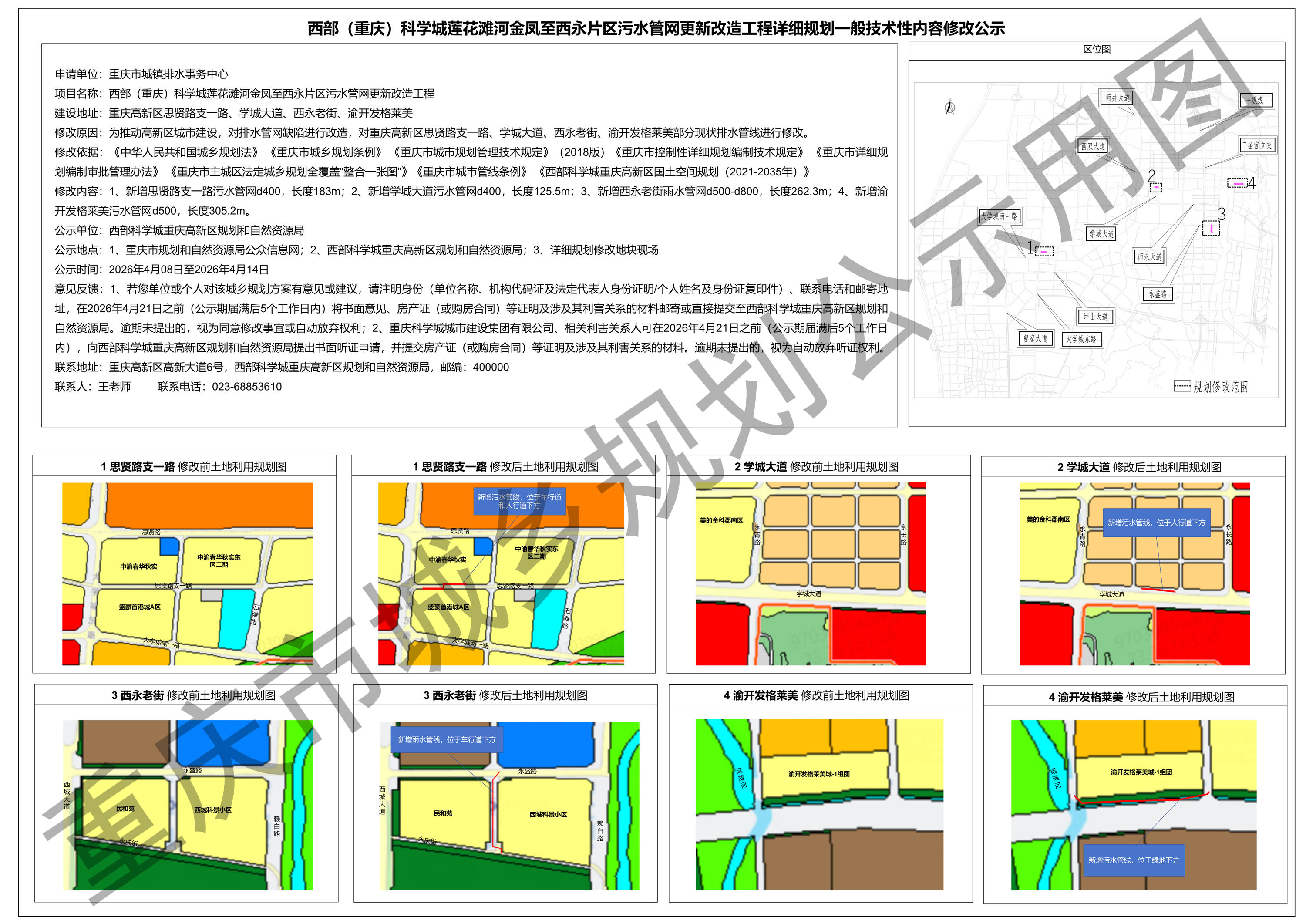 西部(重庆)科学城莲花滩河金凤至西永片区污水管网更新改造工程详细规划一般技术性内容修改公示
