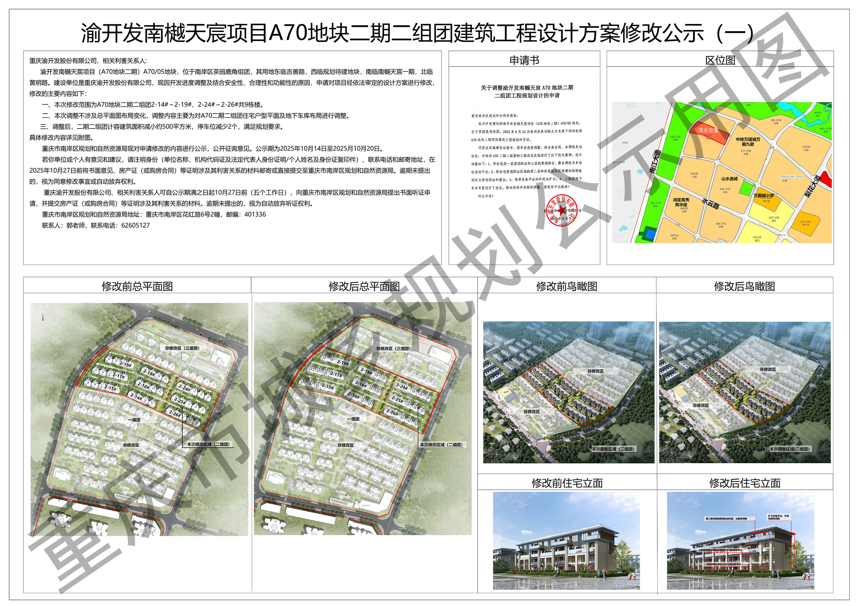 渝开发南樾天宸项目A70地块二期二组团建筑工程设计方案修改公示