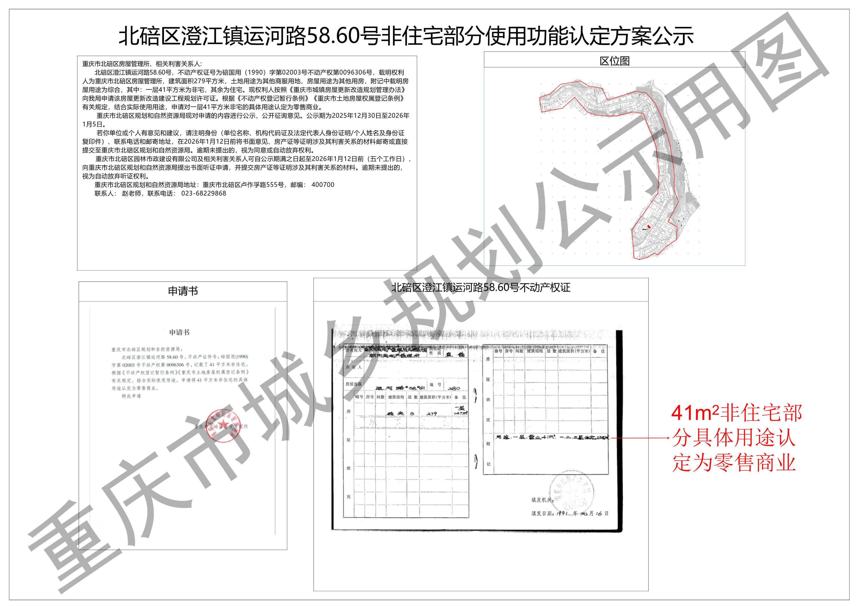 北碚区澄江镇运河路58.60号非住宅部分使用功能认定方案公示
