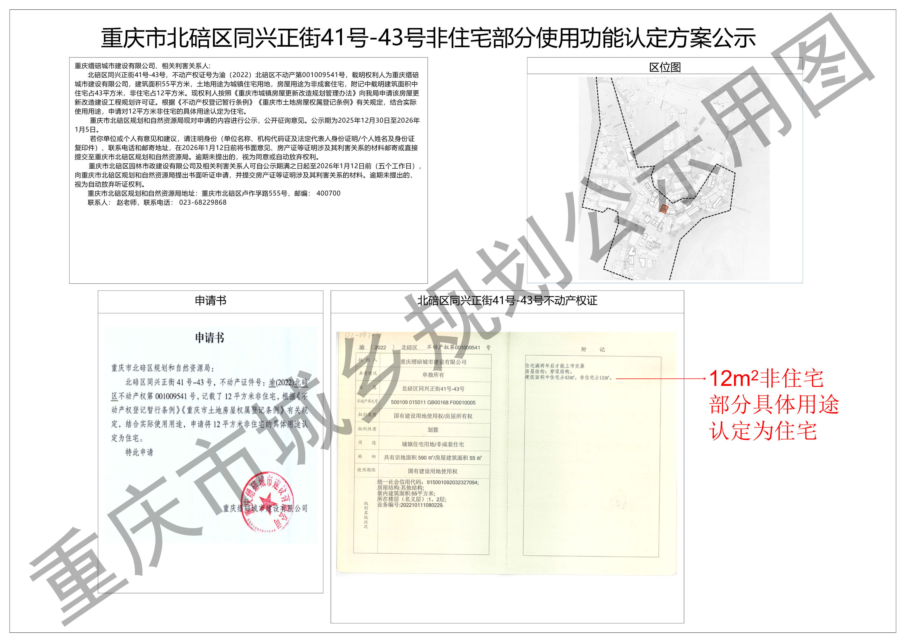 重庆市北碚区同兴正街41号-43号非住宅部分使用功能认定方案公示