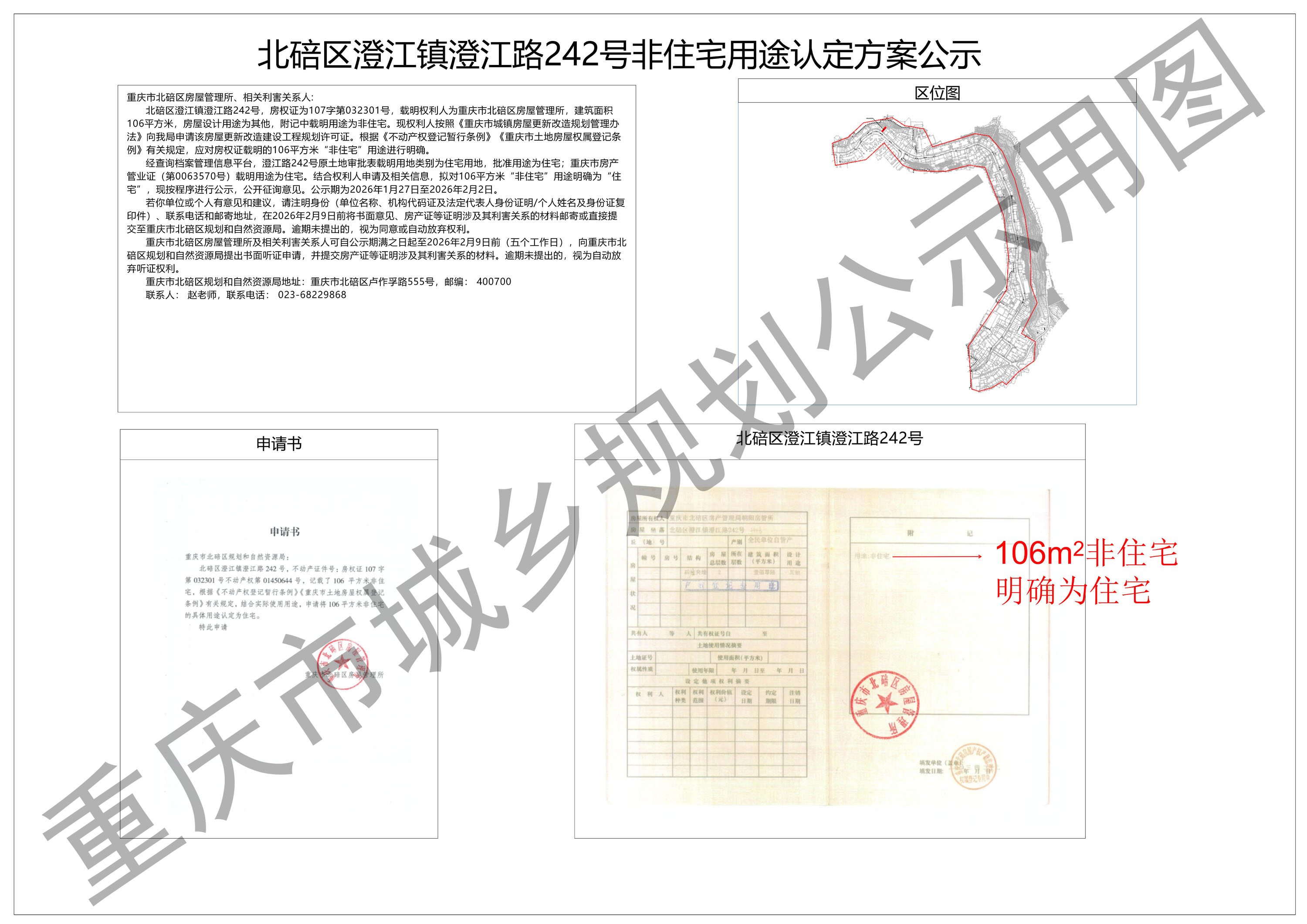 北碚区澄江镇澄江路242号非住宅用途认定方案公示