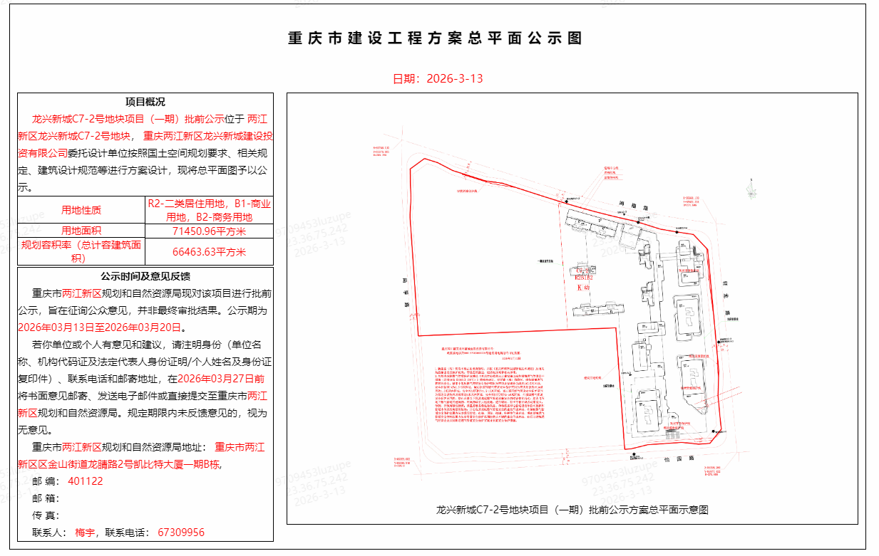 龙兴新城C7-2号地块项目(一期)批前公示