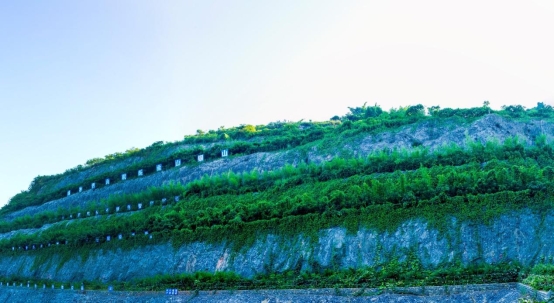 植被优选“驱动轮”:适生稳群增绿效。针对灰岩矿区保水性差的特点,通过反复探索试验,筛选出成本低、易成活、耐旱性强的刺桐、芦竹等优势物种,搭配三角梅等灌木及多种草本,形成立体稳定植被群落。植被成活率稳定在95%以上,大幅减少补植成本。