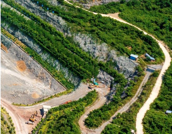 采复作业“并进”,快衔接提效率。 创新实施“采复并举”平行作业模式。在开采台阶后方同步开展修复施工,并与前方采掘面严格保持30米安全间距。对达到最终标高的平台,及时修筑堡坎,回覆1-2米厚经储存和培肥处理的剥离表土,实施“剥离-储存-回用”表土管理模式,有效降低了覆土难度,缩短了损毁土地裸露时间,形成了“开采-修复”的高效无缝衔接循环。