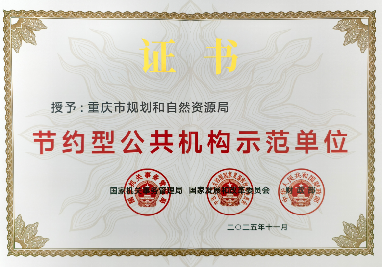 近日,国家机关事务管理局、国家发展和改革委员会、财政部联合公布了“2023—2024年节约型公共机构示范单位和能效领跑者名单”,重庆市规划和自然资源局位列其中,荣获“节约型公共机构示范单位”称号。