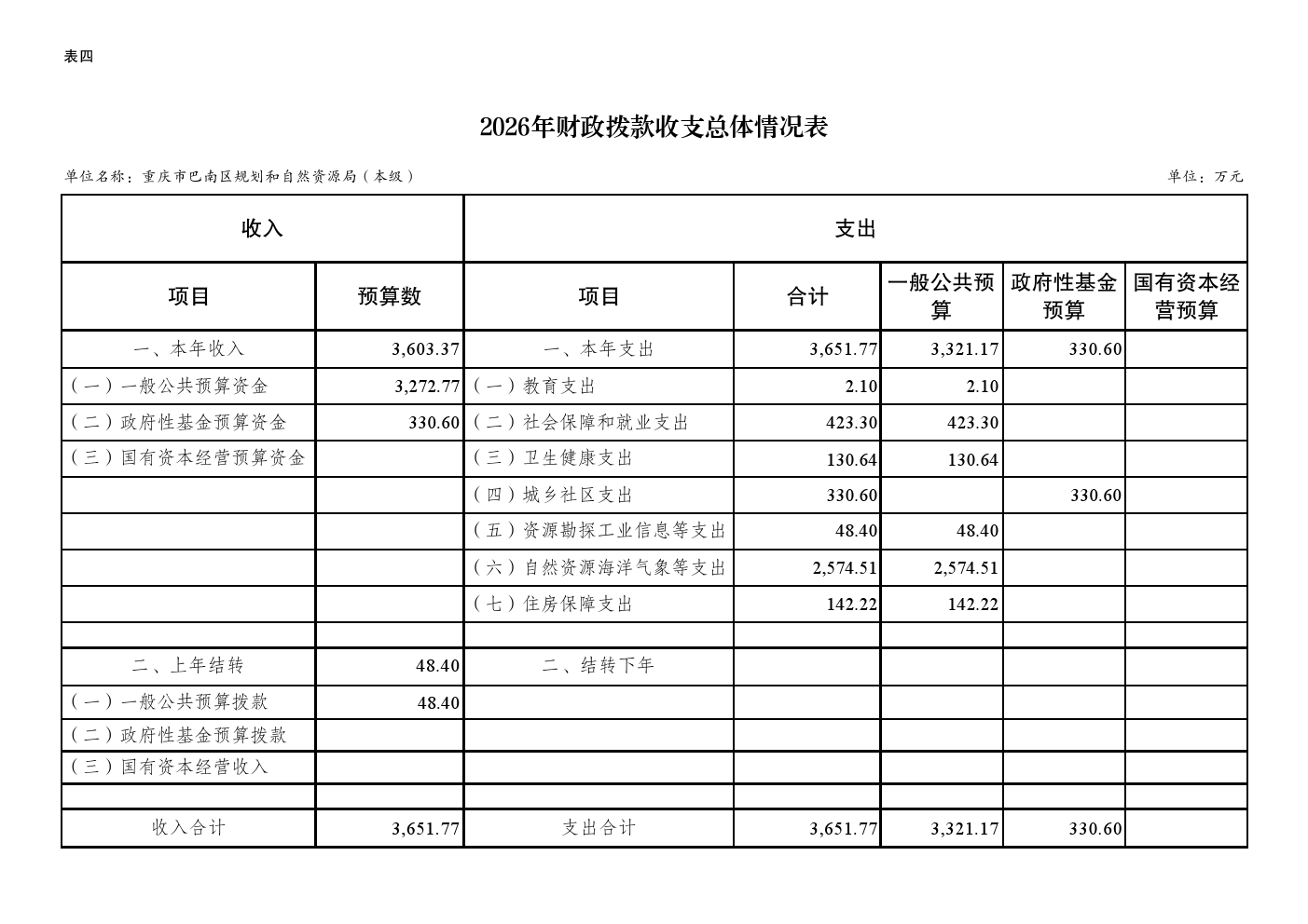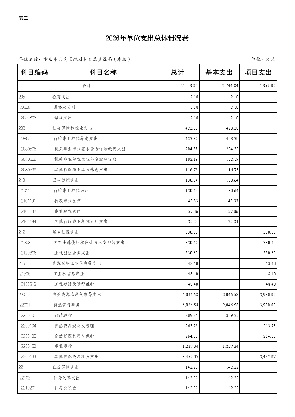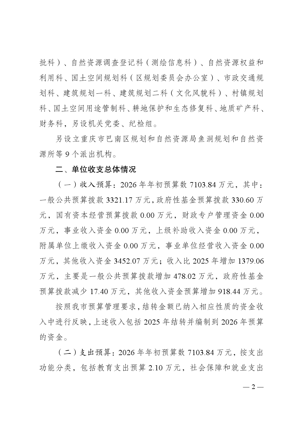 重庆市巴南区规划和自然资源局(本级)2026年预算情况说明