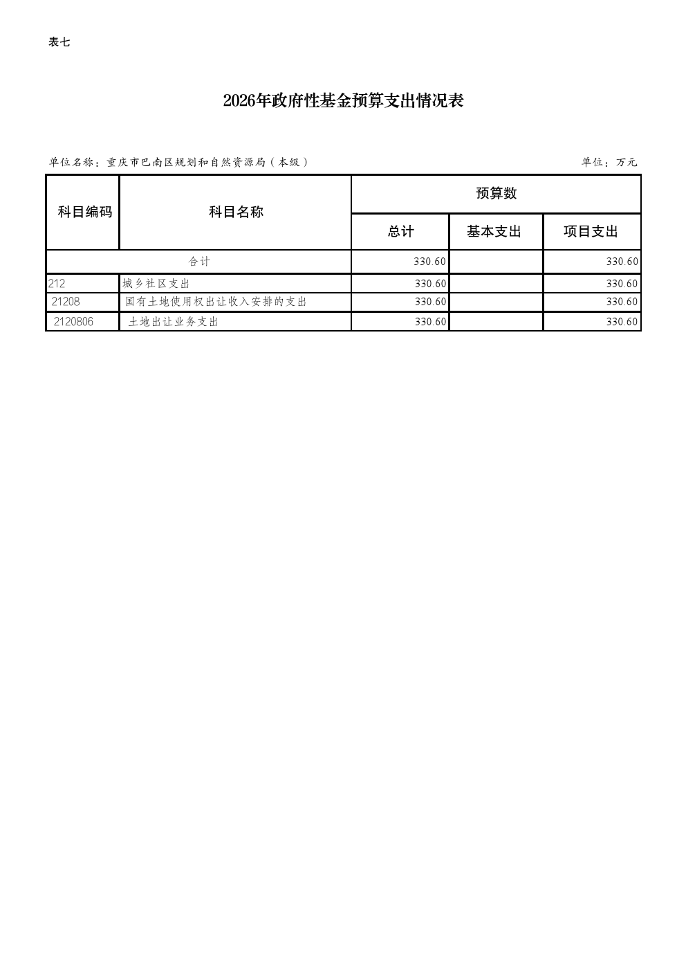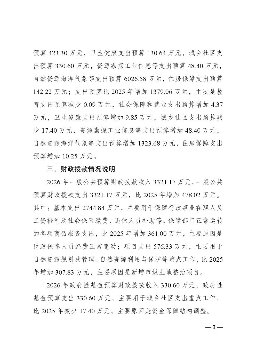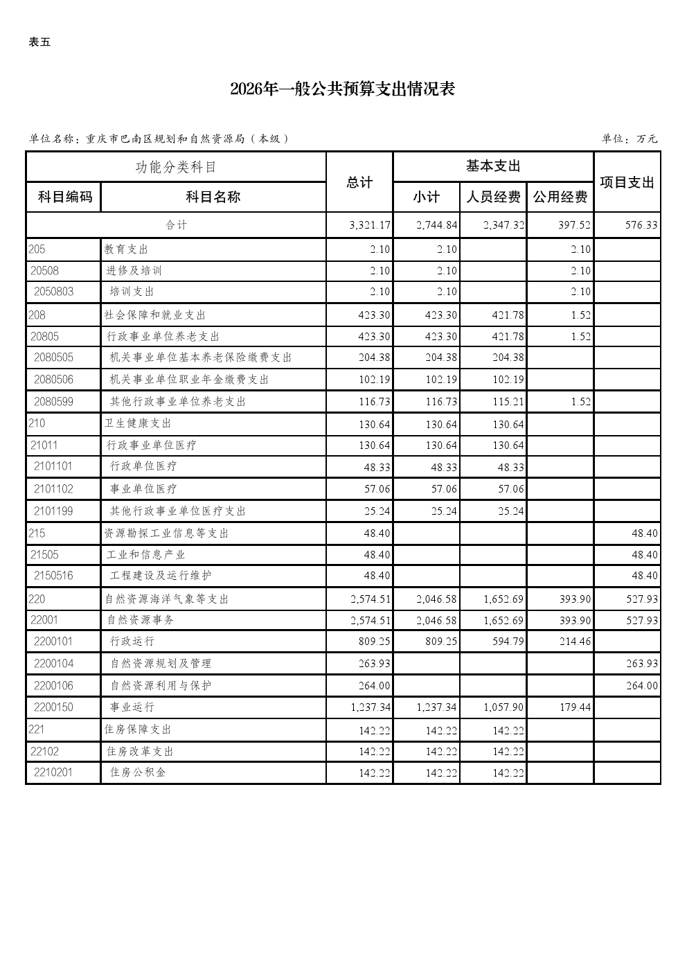 重庆市巴南区规划和自然资源局(本级)2026年预算情况说明