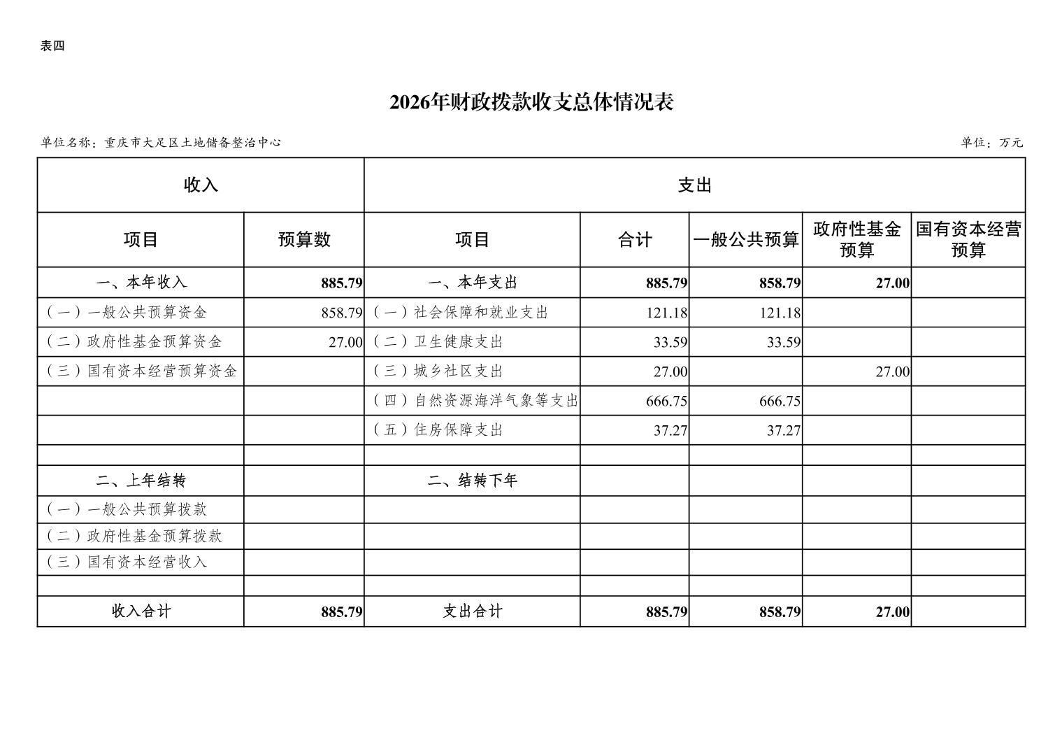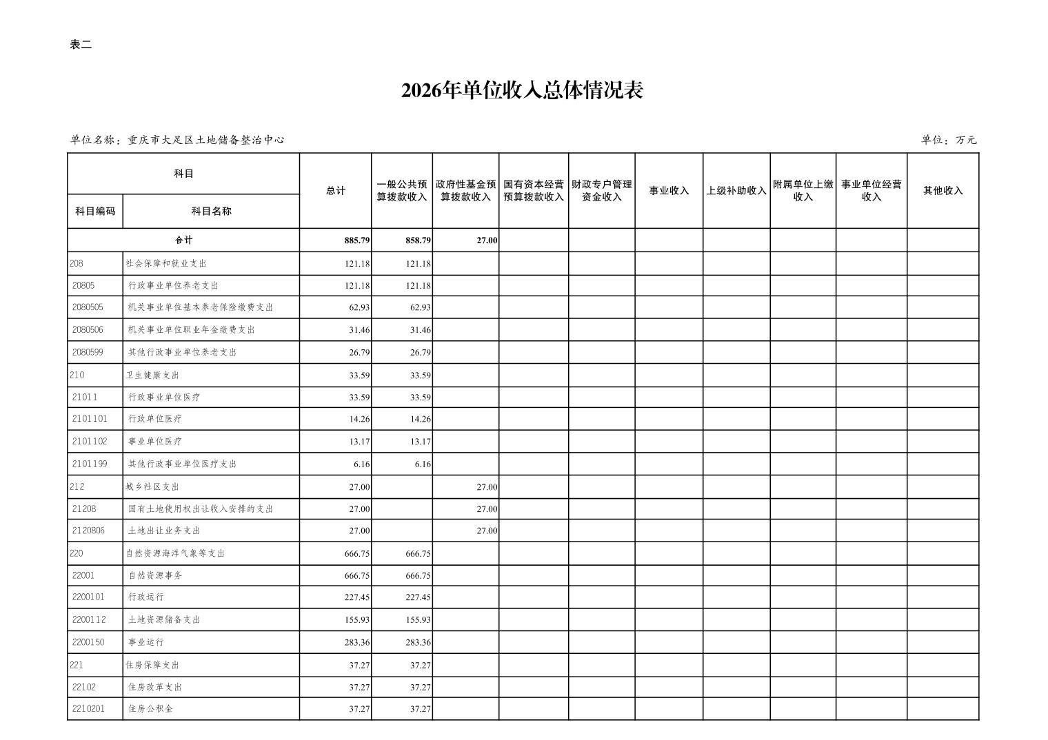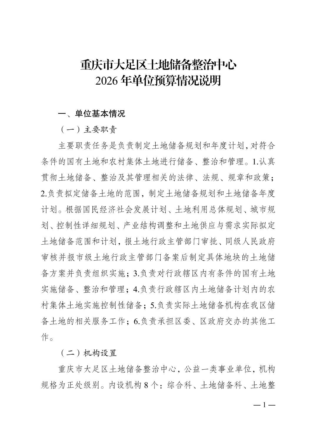 重庆市大足区土地储备整治中心2026年预算情况说明