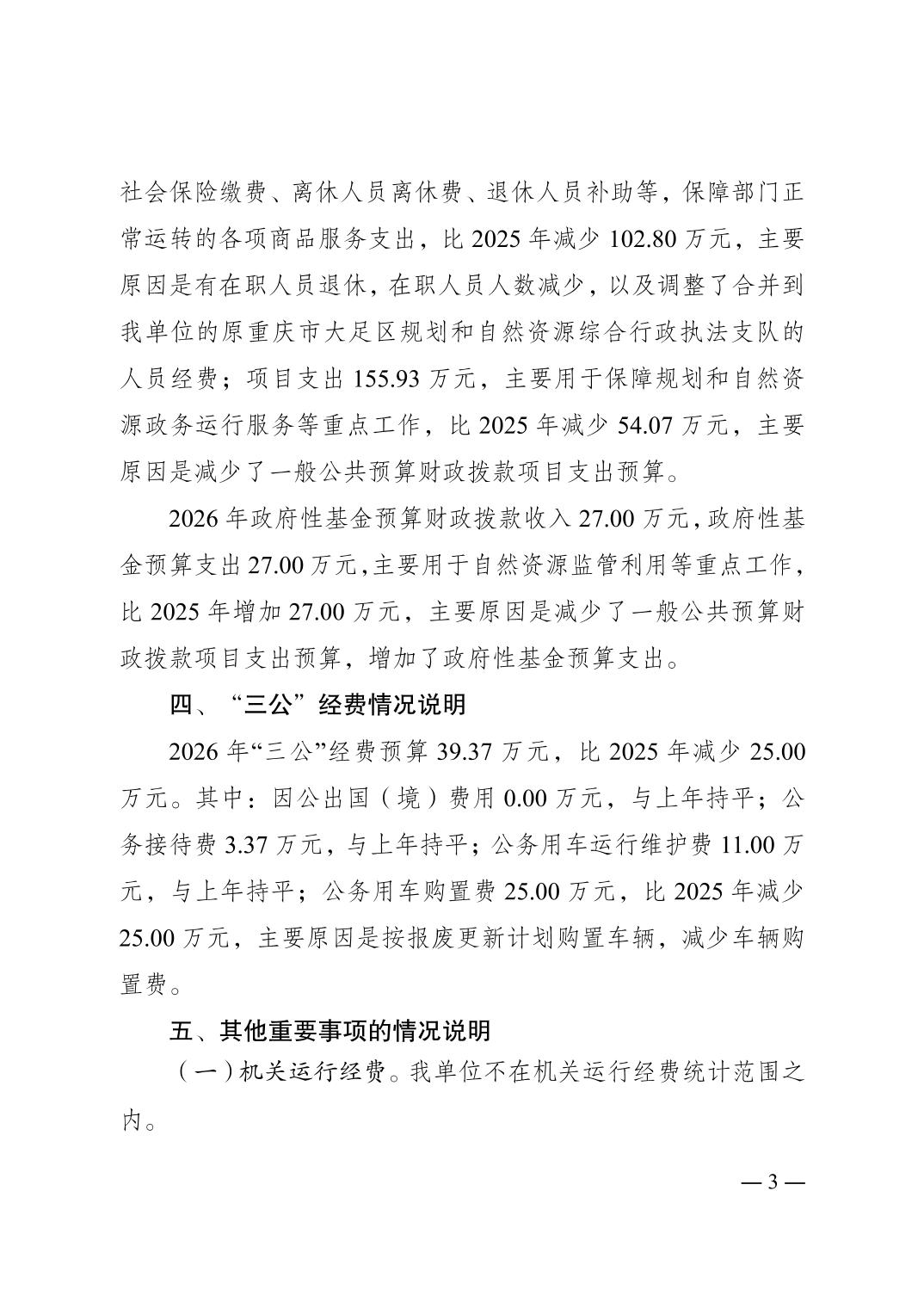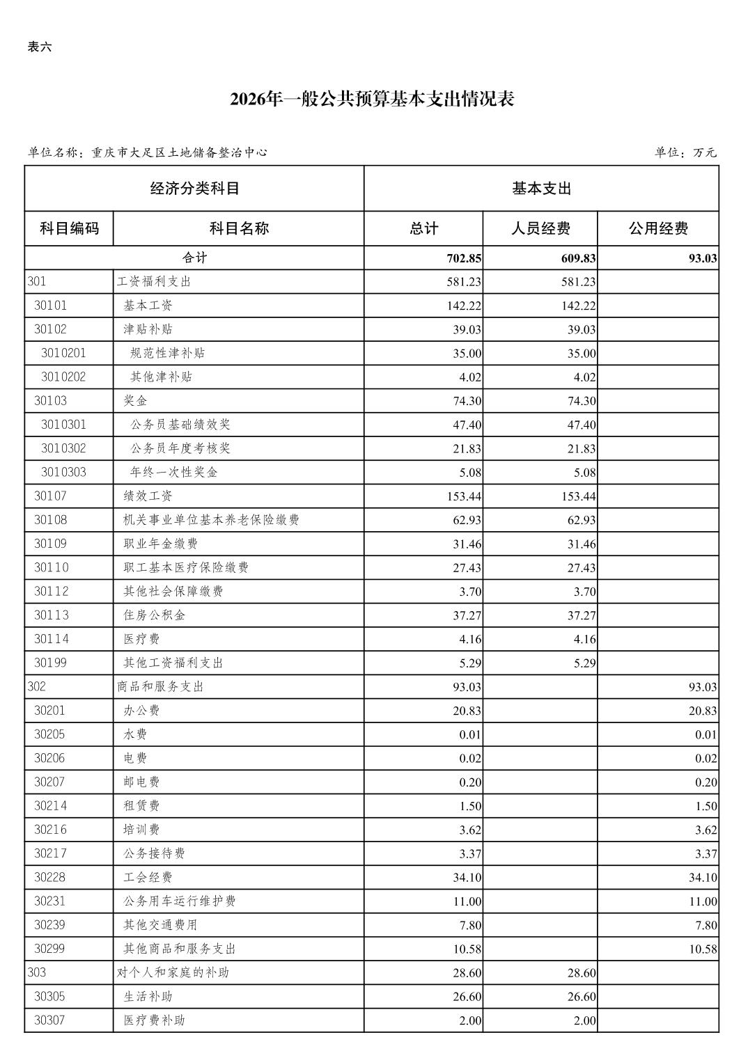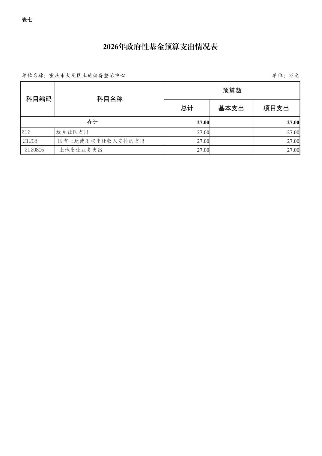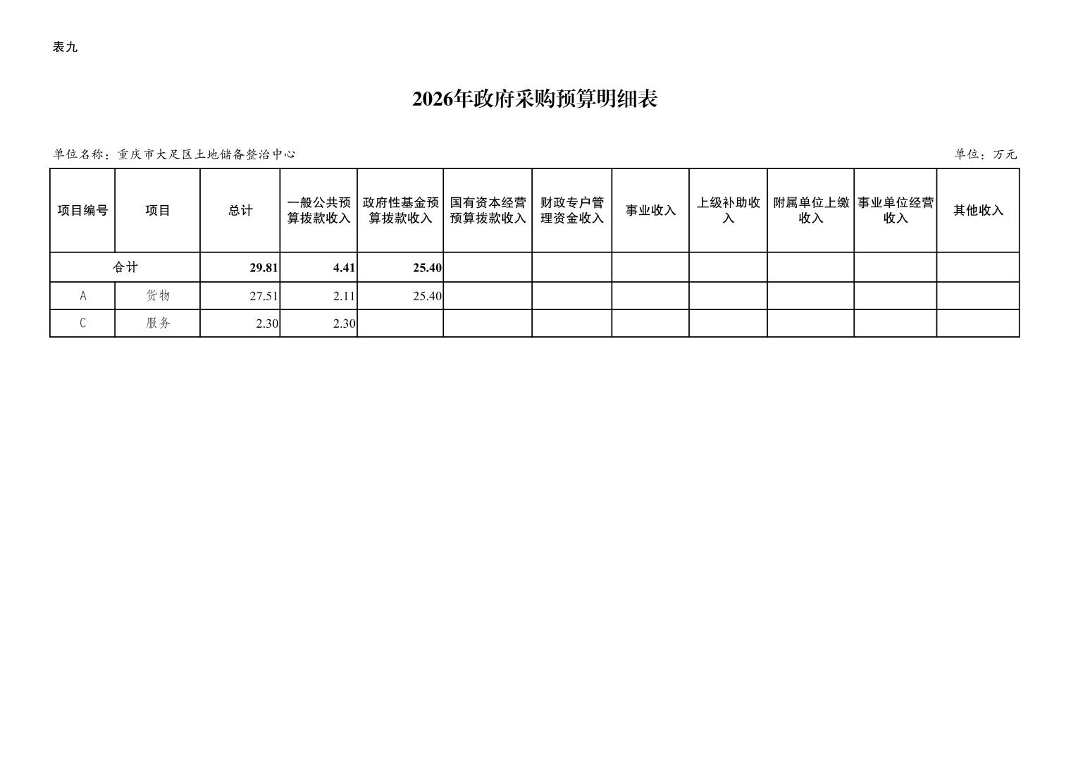 重庆市大足区土地储备整治中心2026年预算情况说明