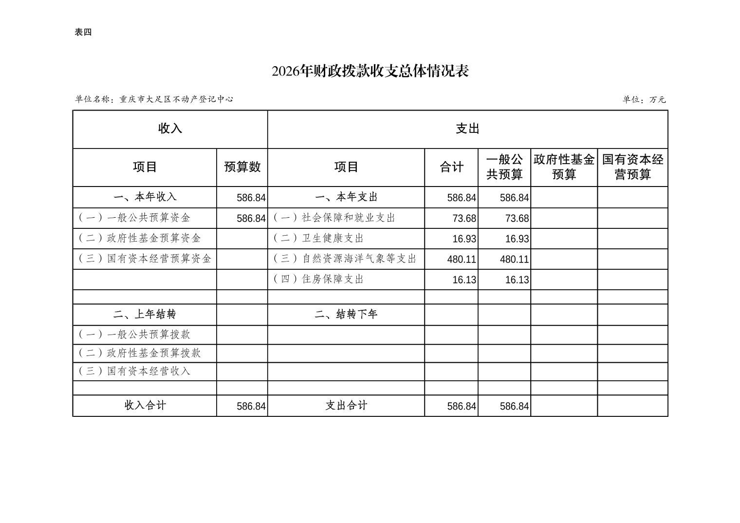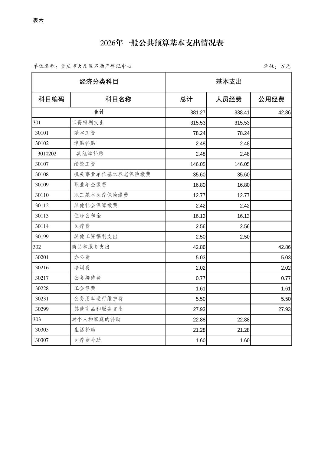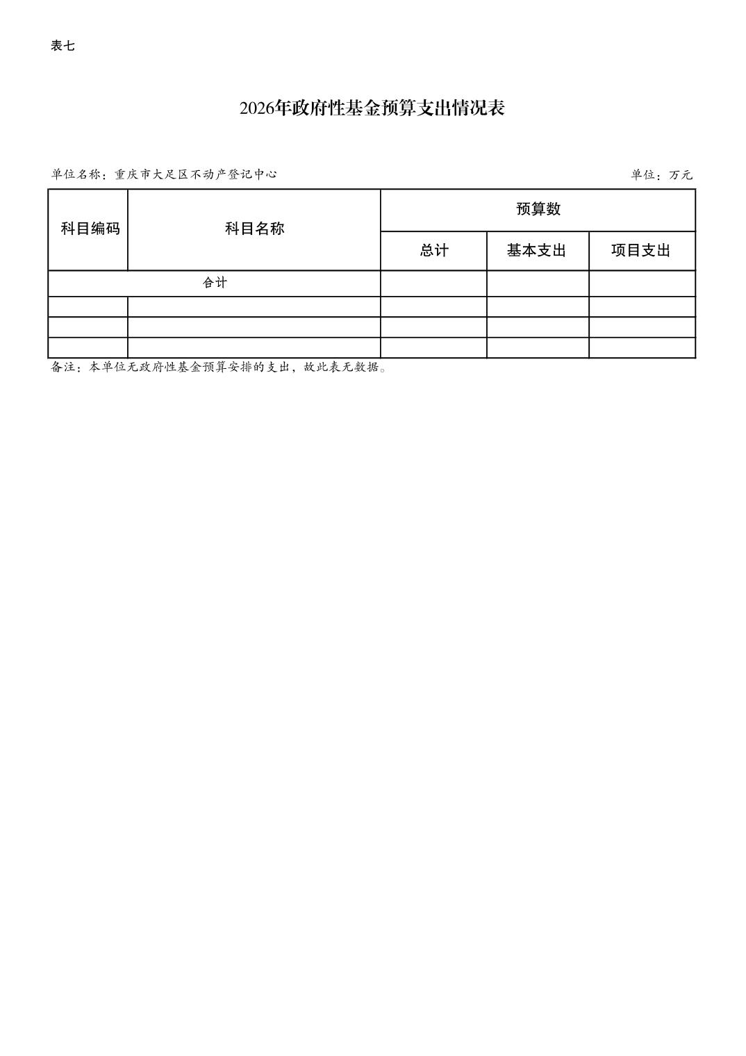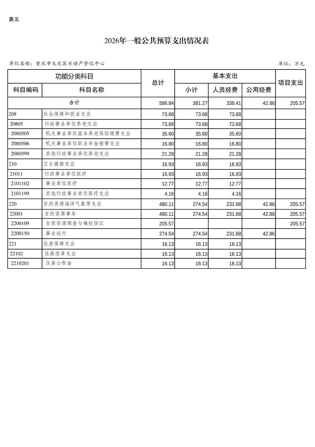 重庆市大足区不动产登记中心2026年预算情况说明