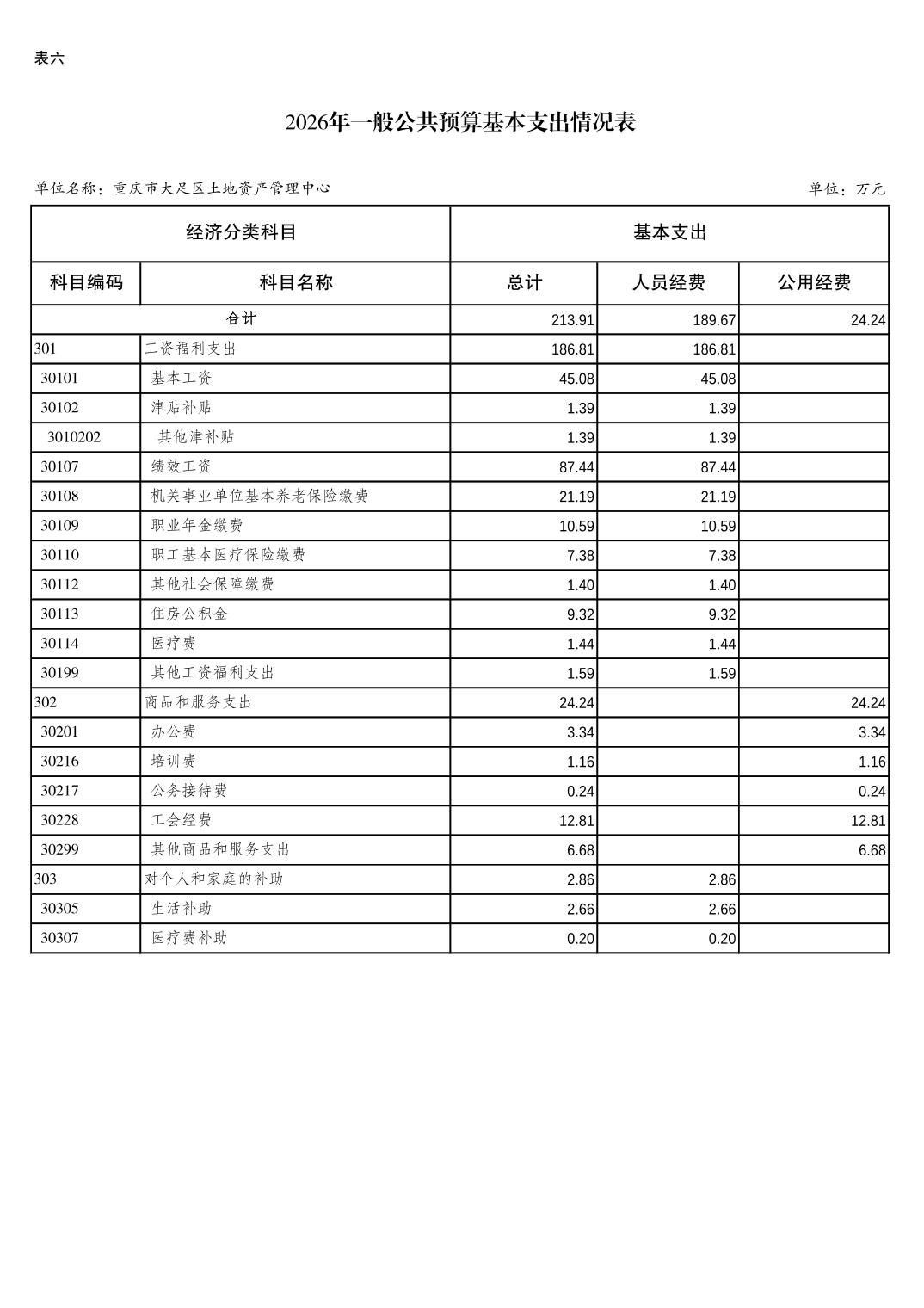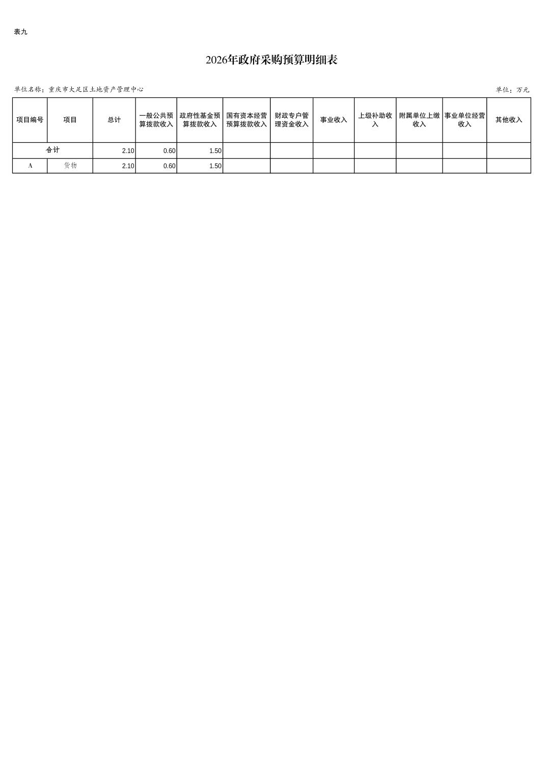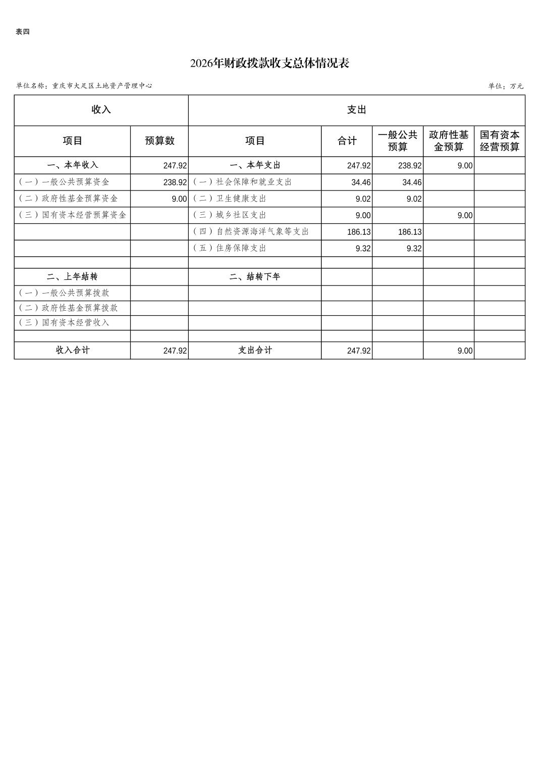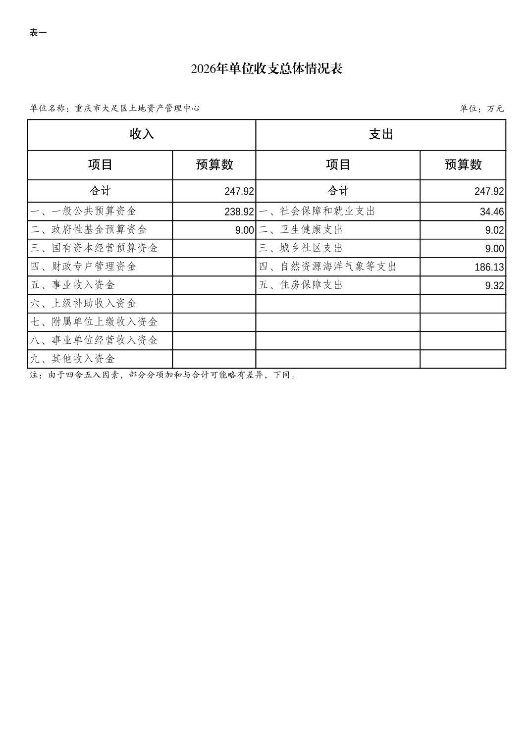 重庆市大足区土地资产管理中心2026年预算情况说明