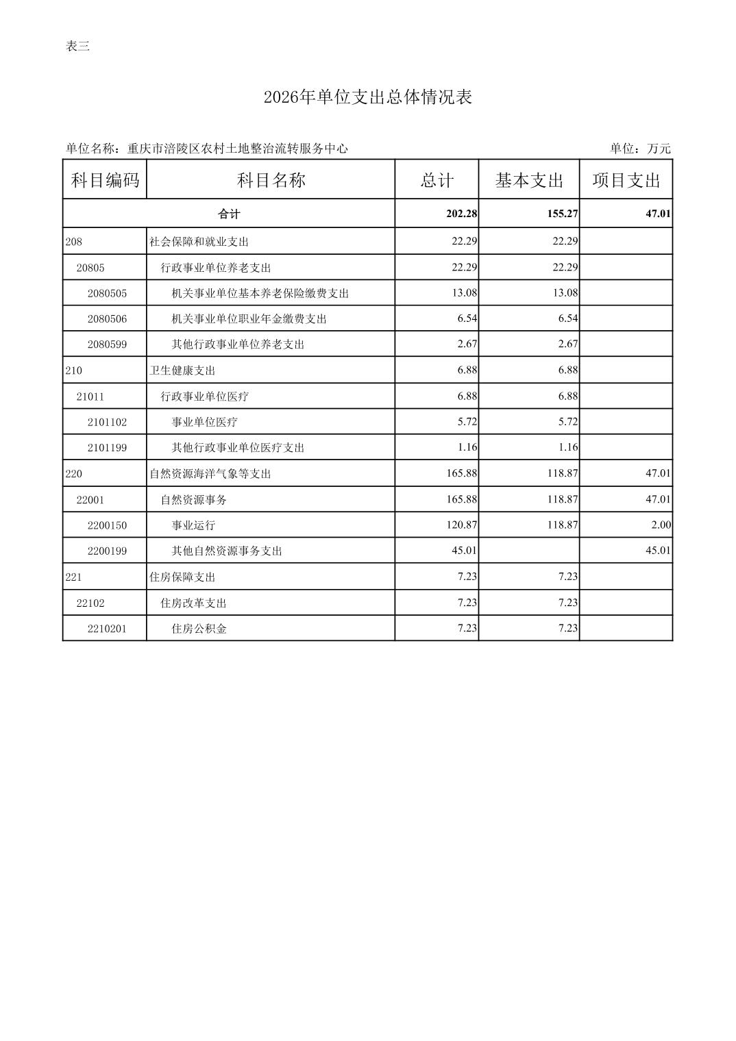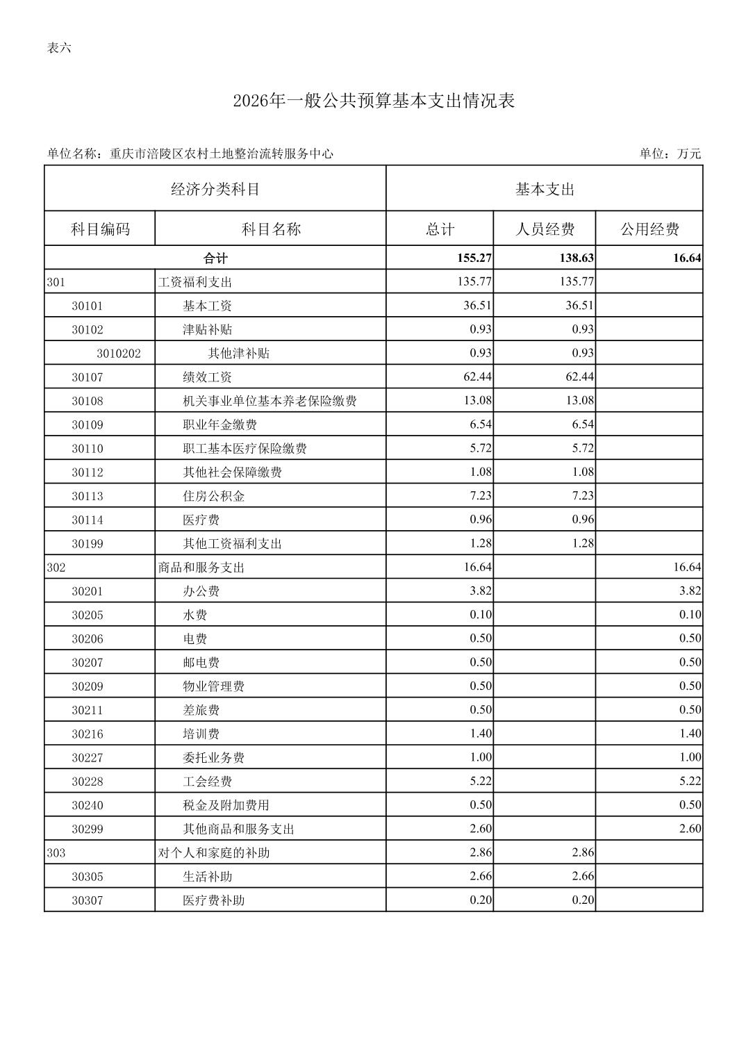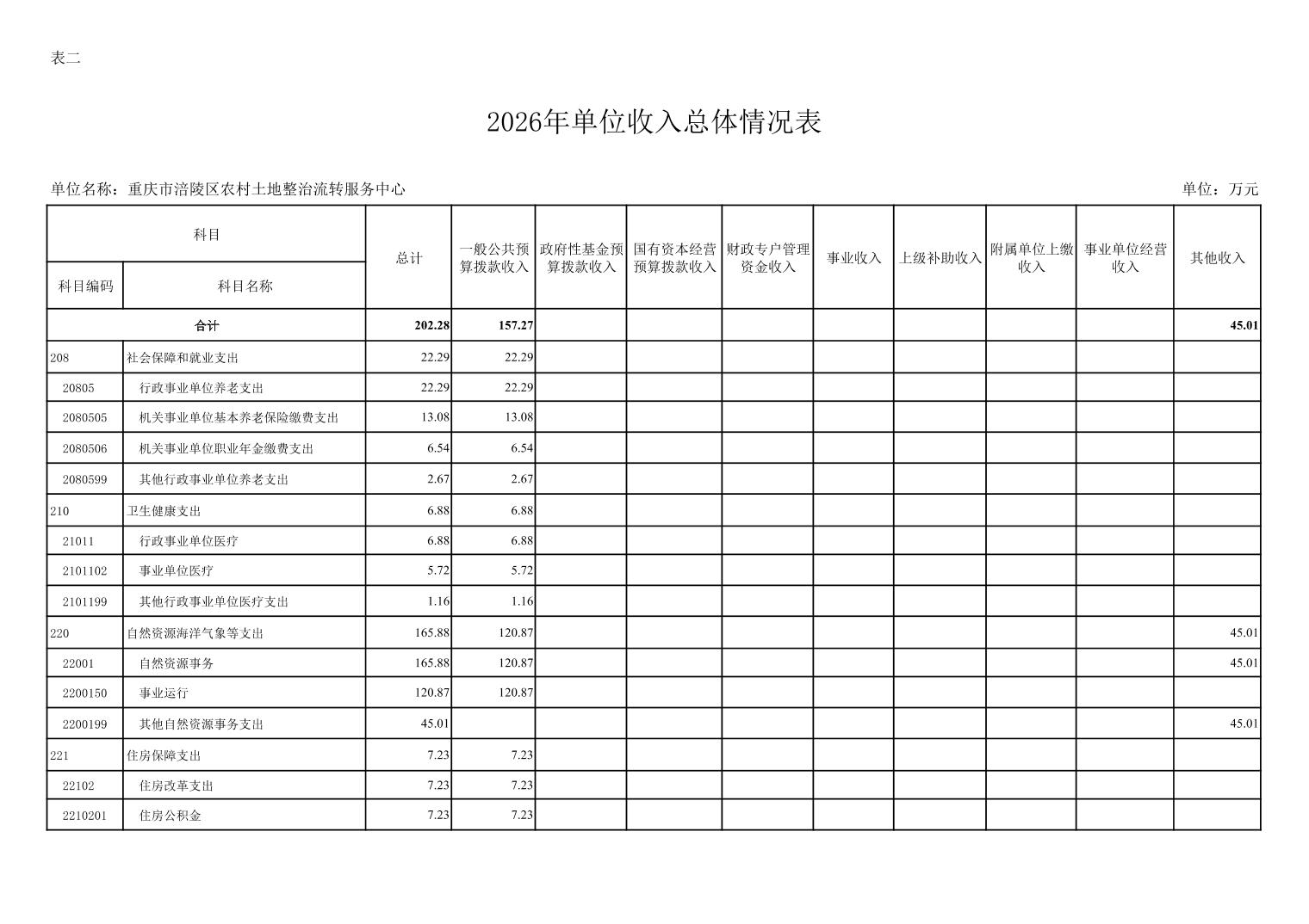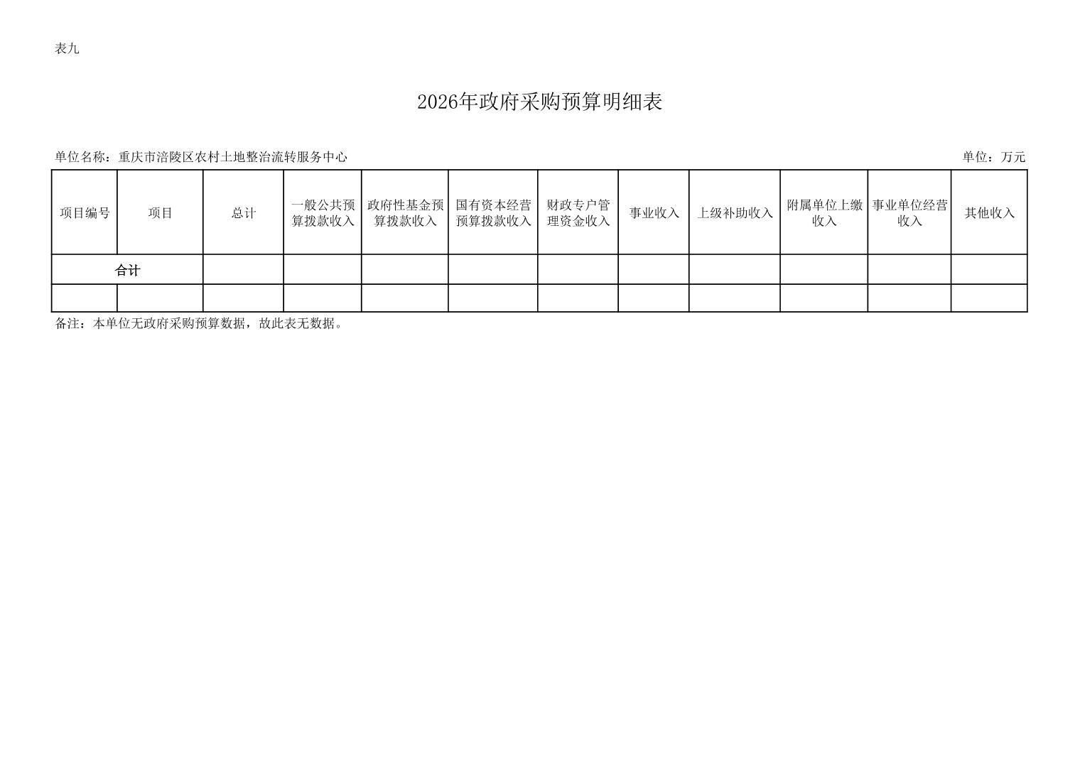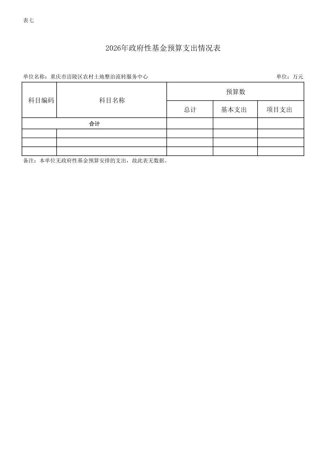 重庆市涪陵区农村土地整治流转服务中心2026年预算情况说明