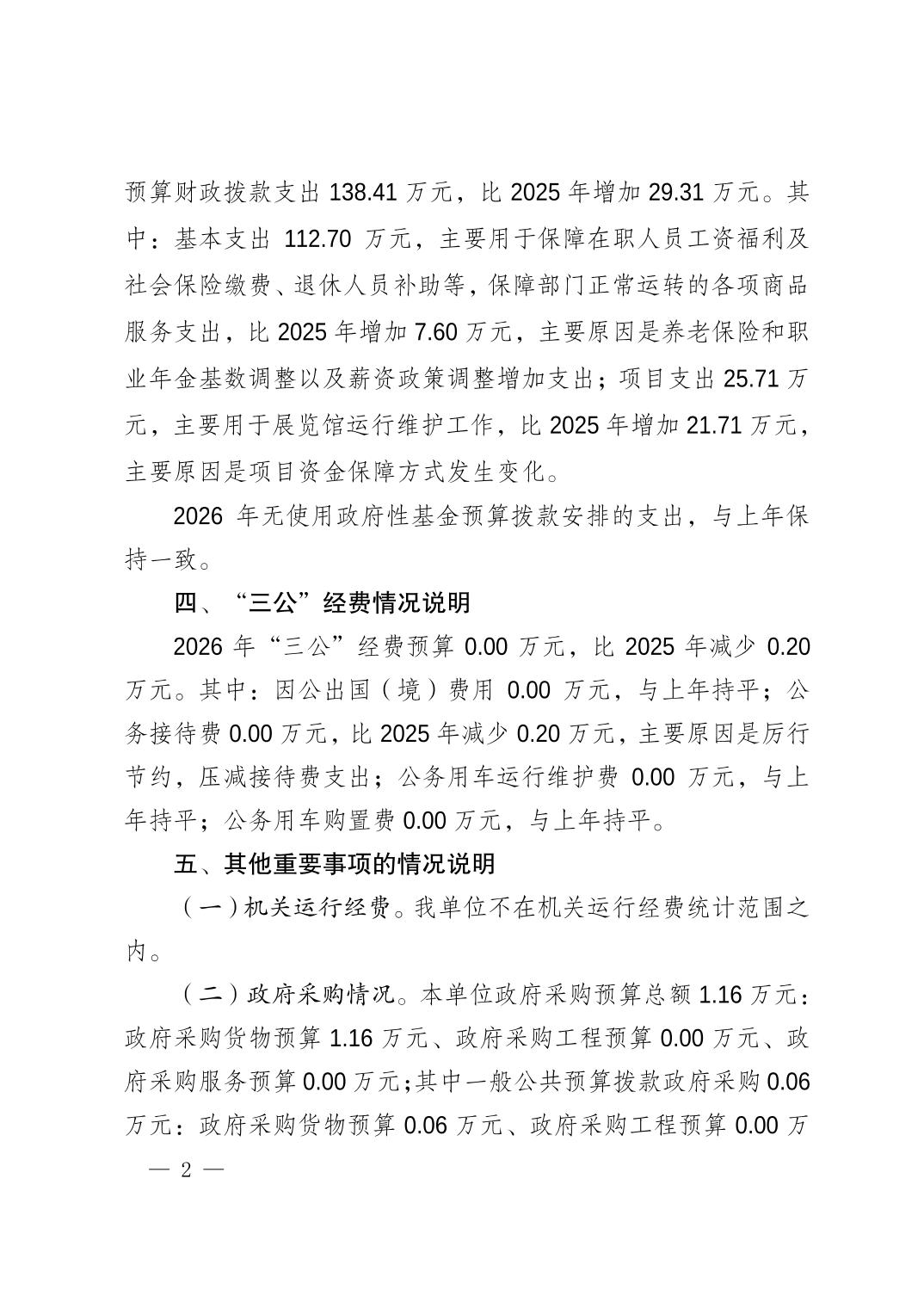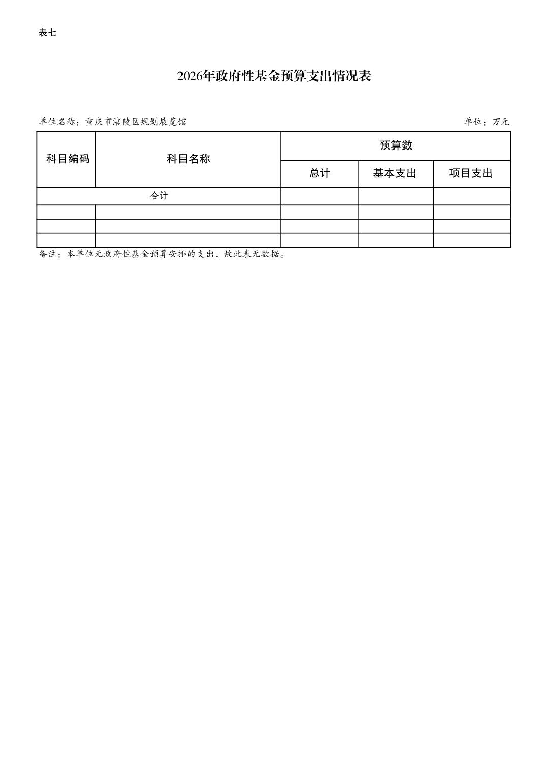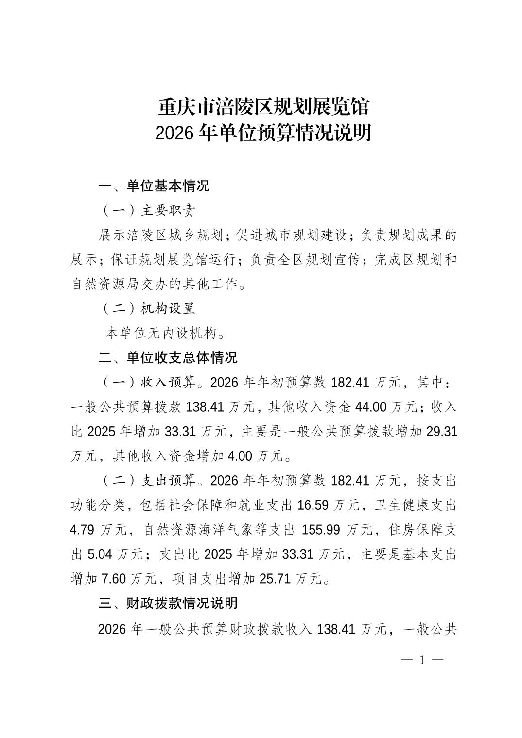 重庆市涪陵区规划展览馆2026年预算情况说明