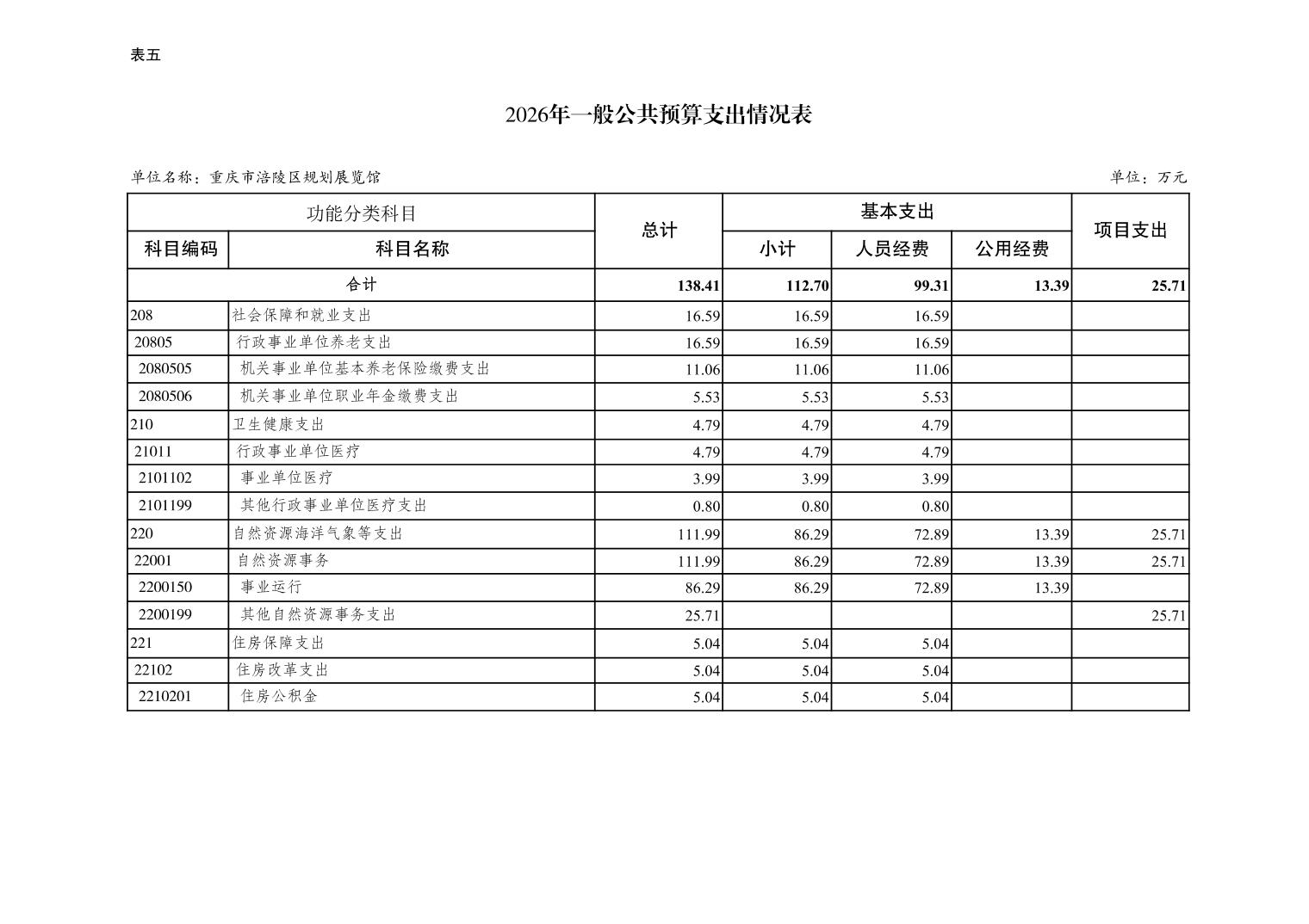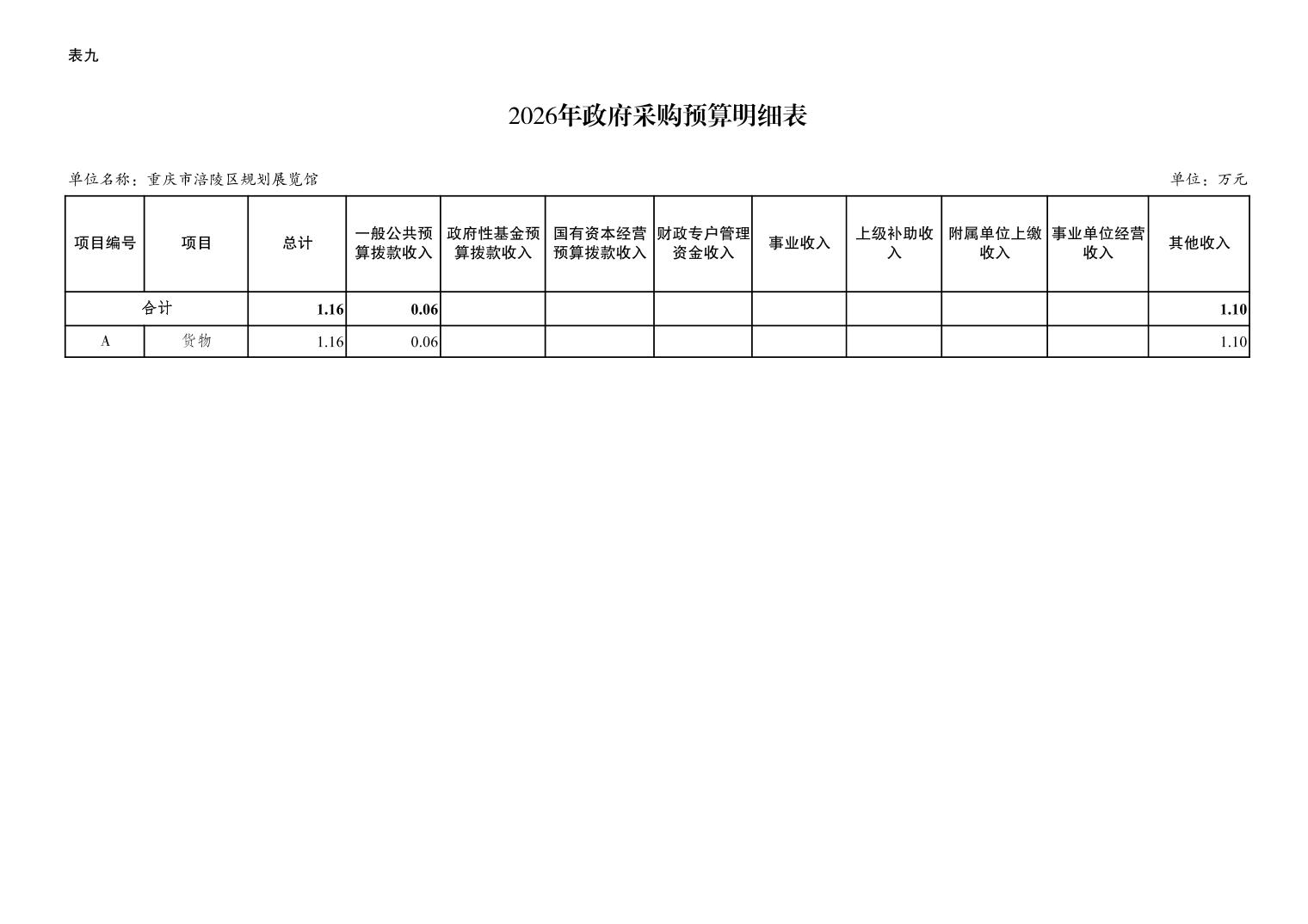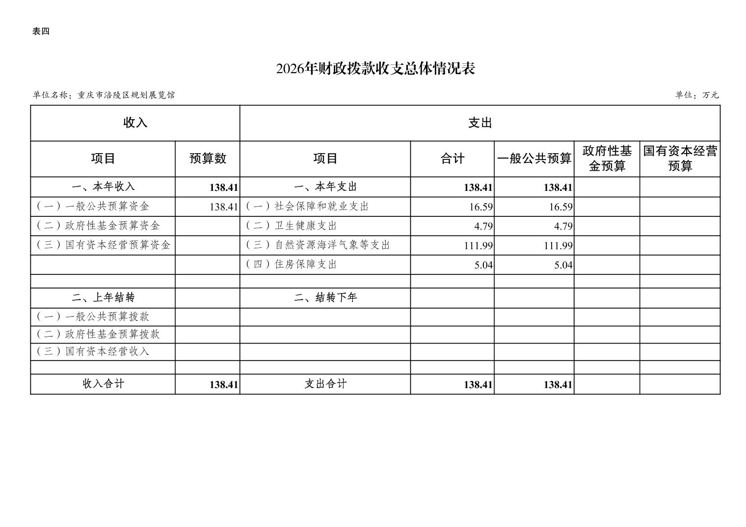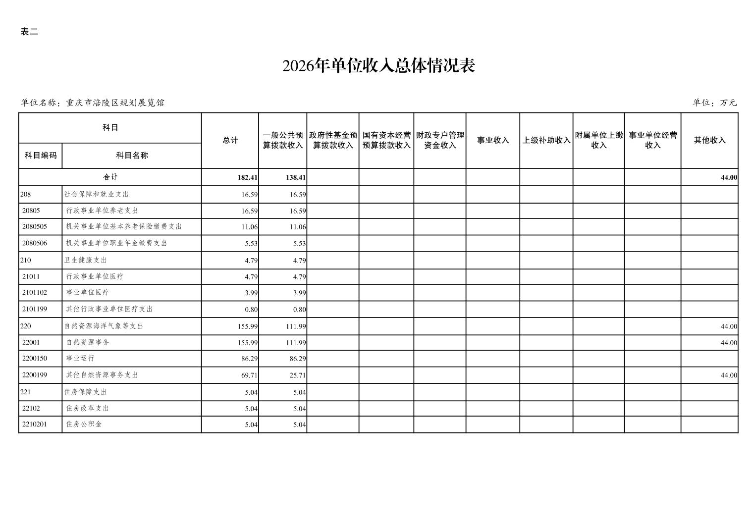 重庆市涪陵区规划展览馆2026年预算情况说明