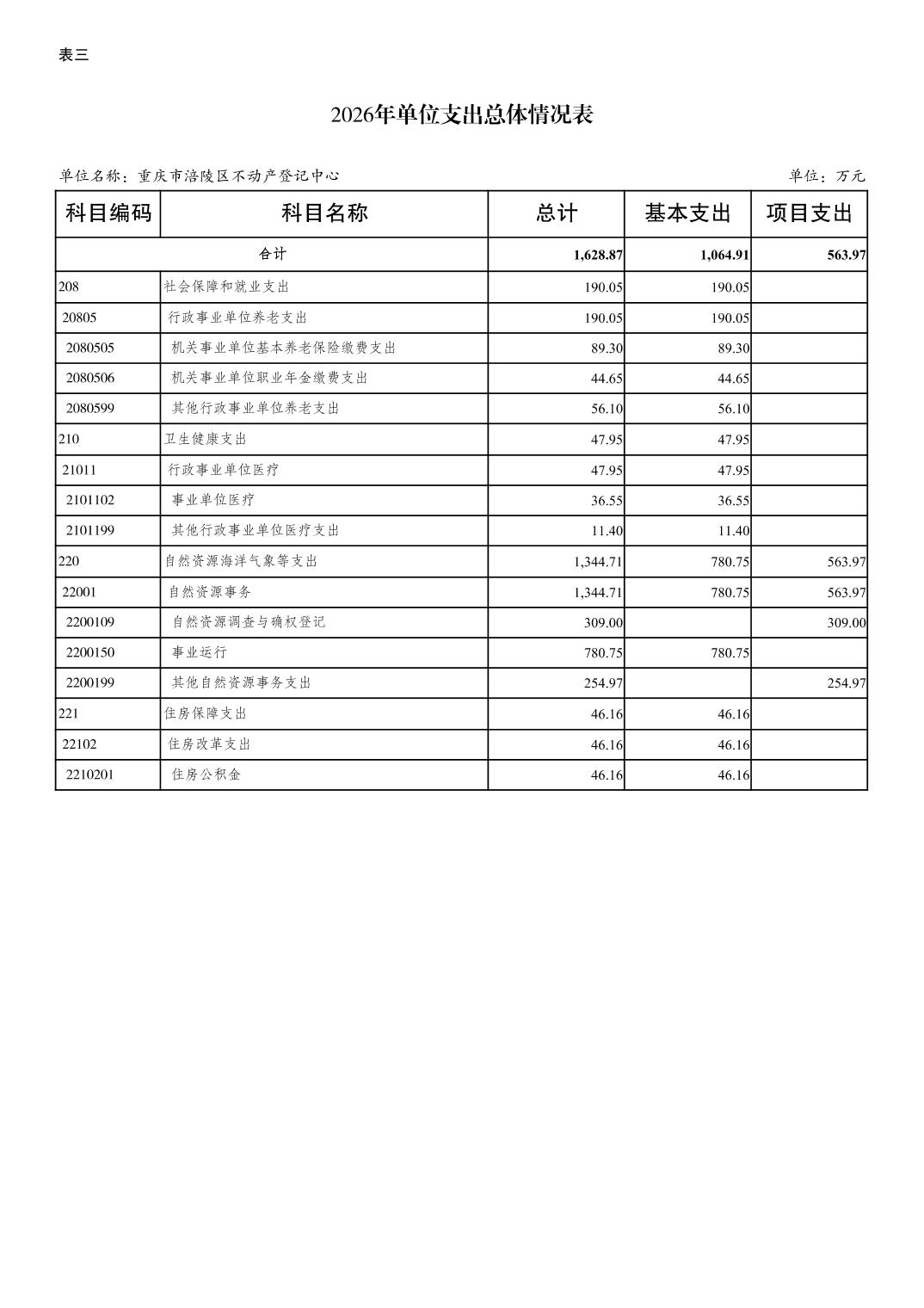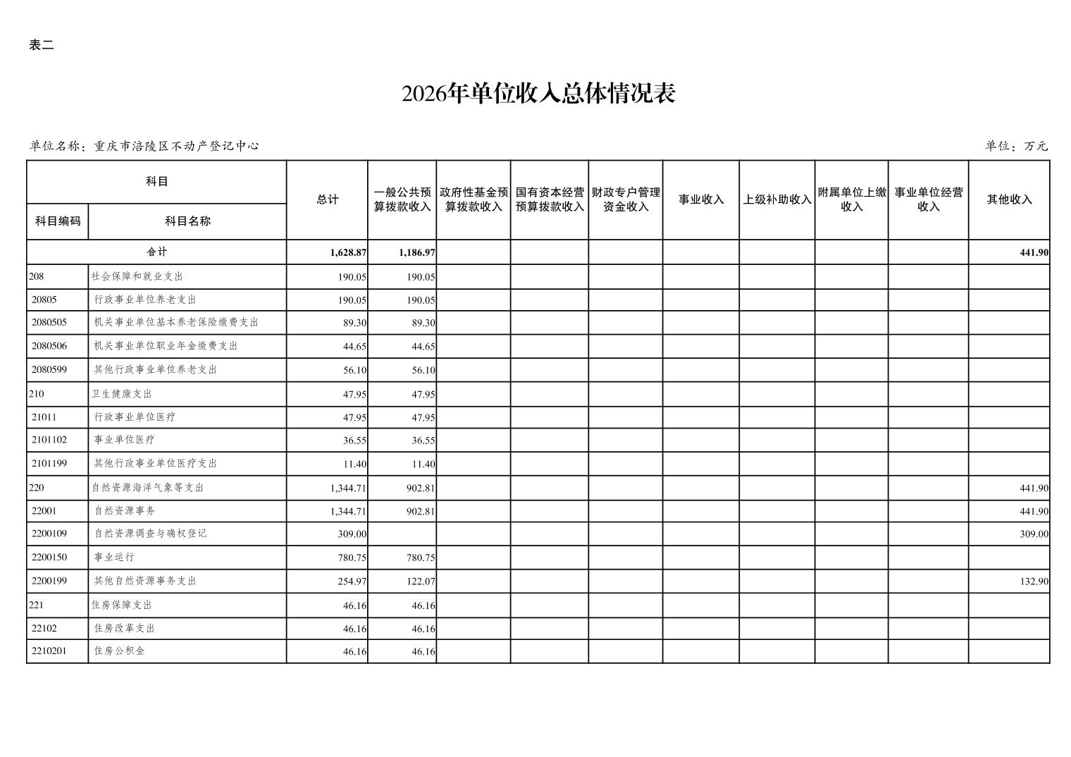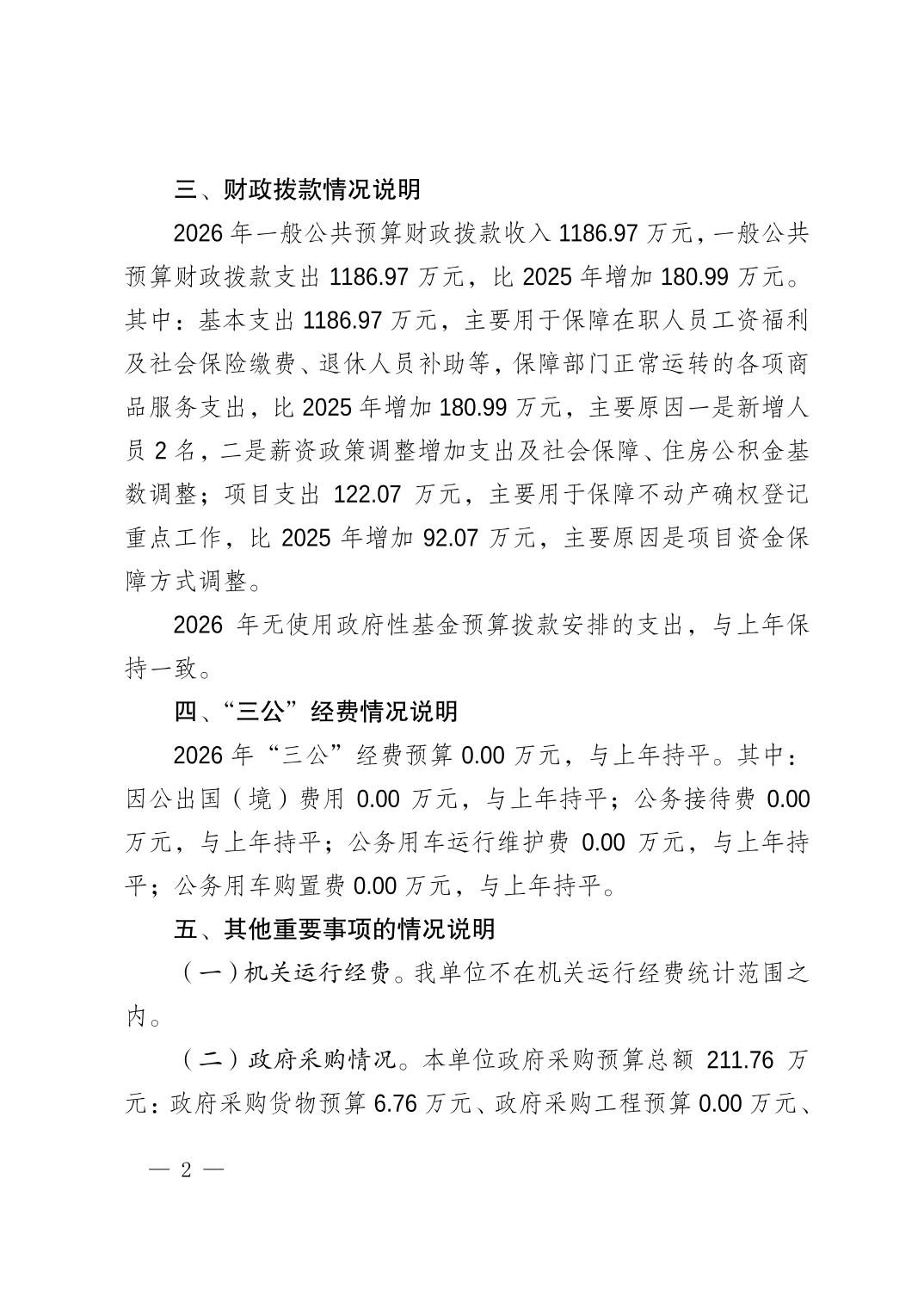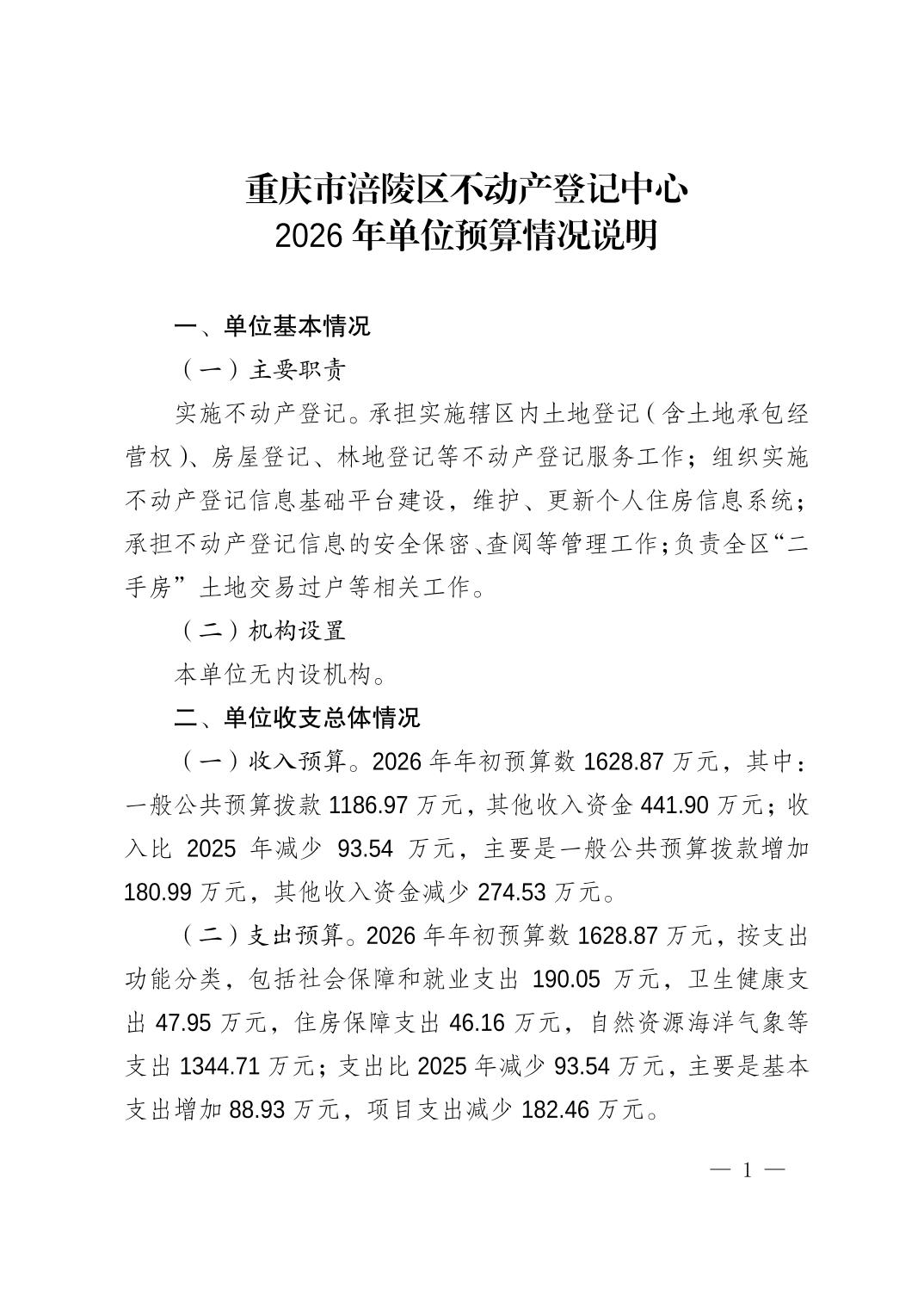 重庆市涪陵区不动产登记中心2026年预算情况说明