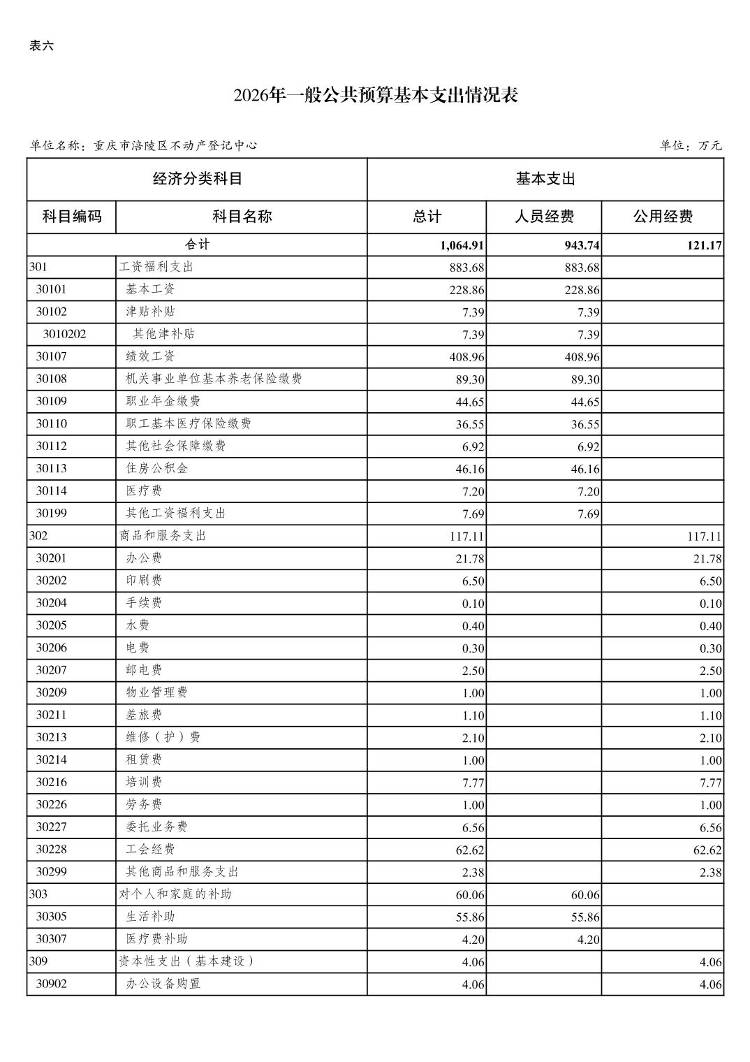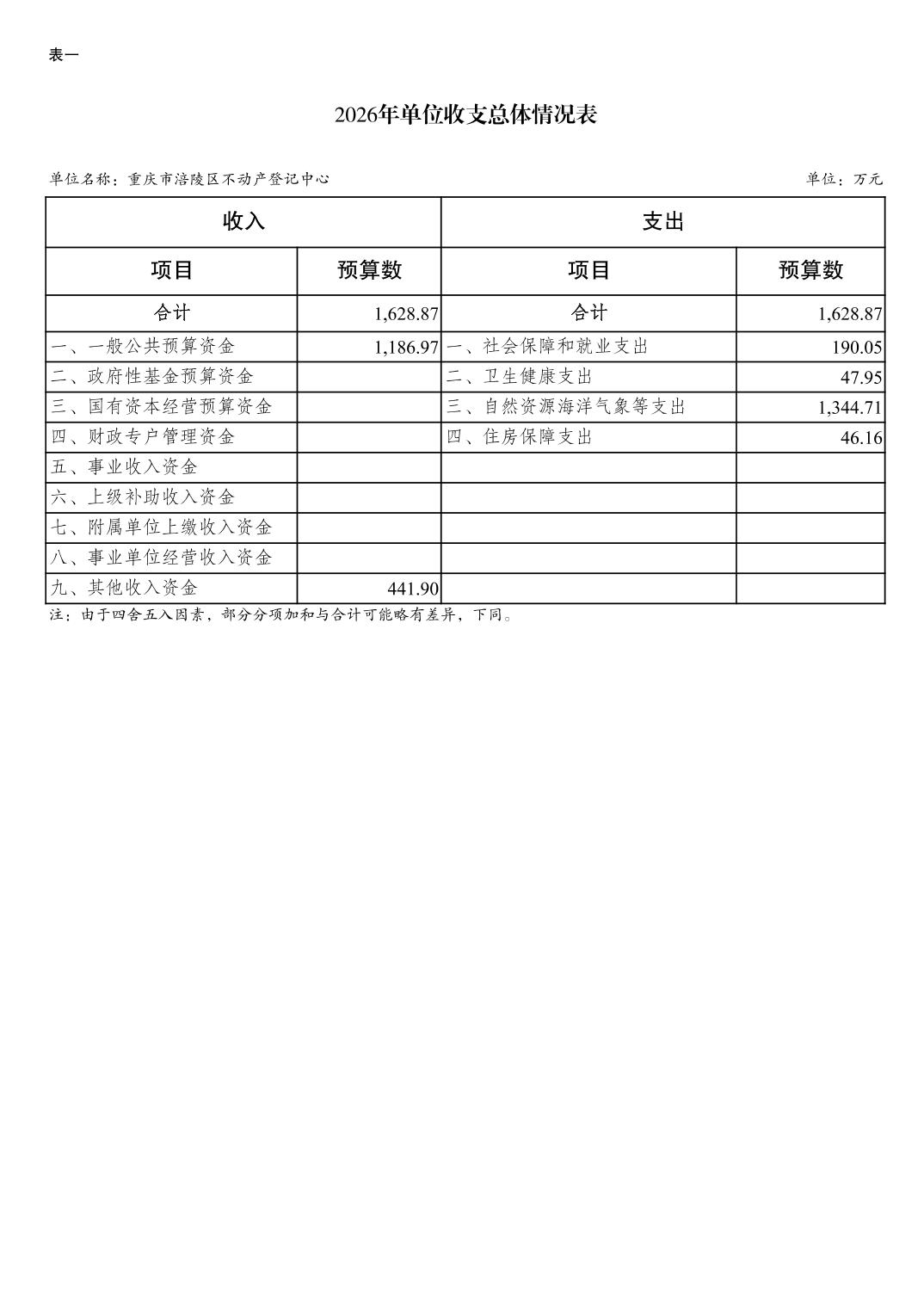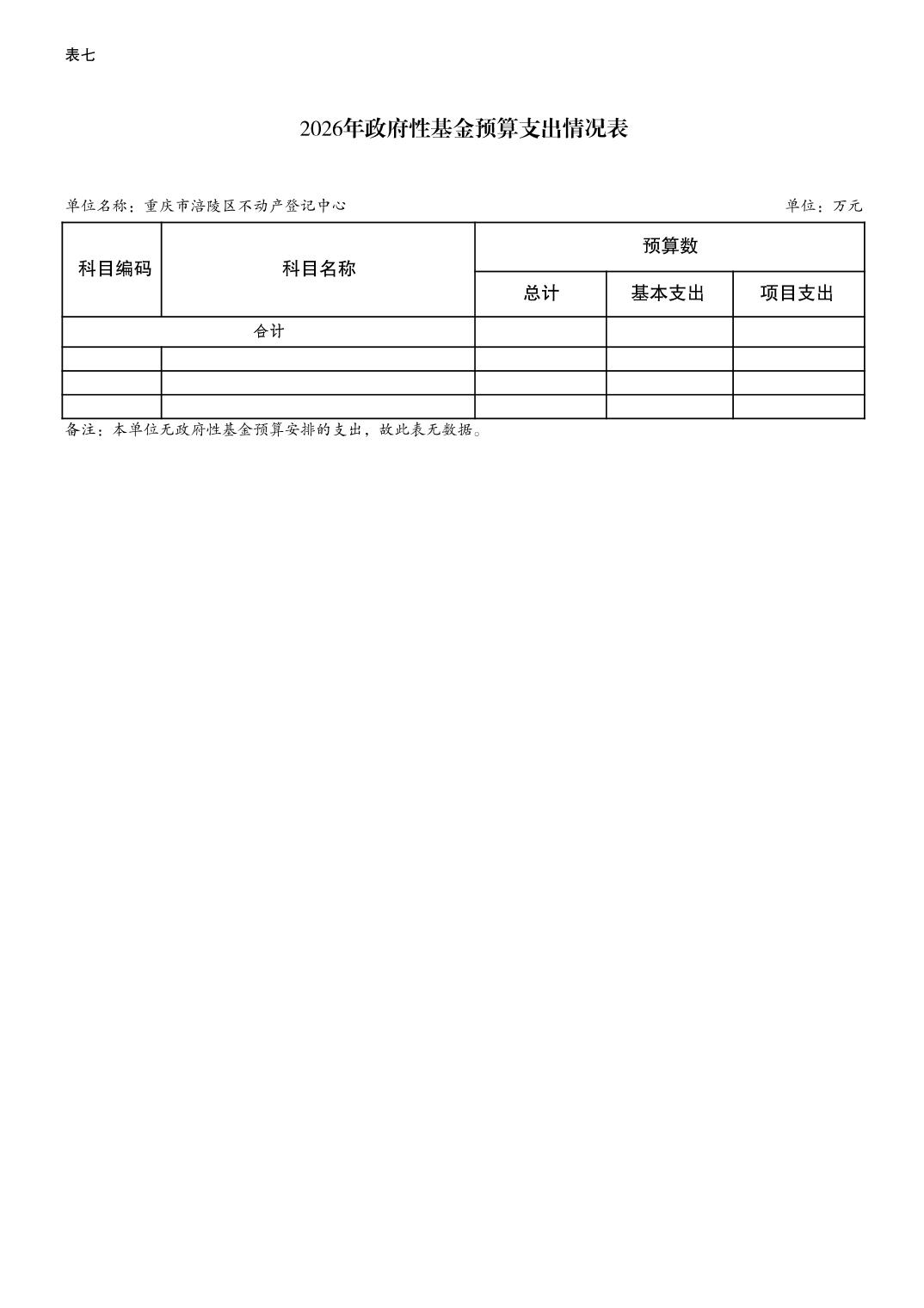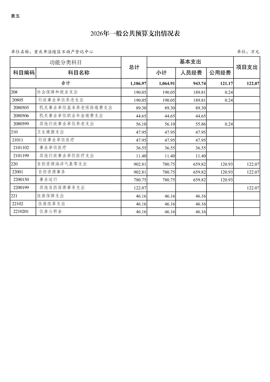 重庆市涪陵区不动产登记中心2026年预算情况说明